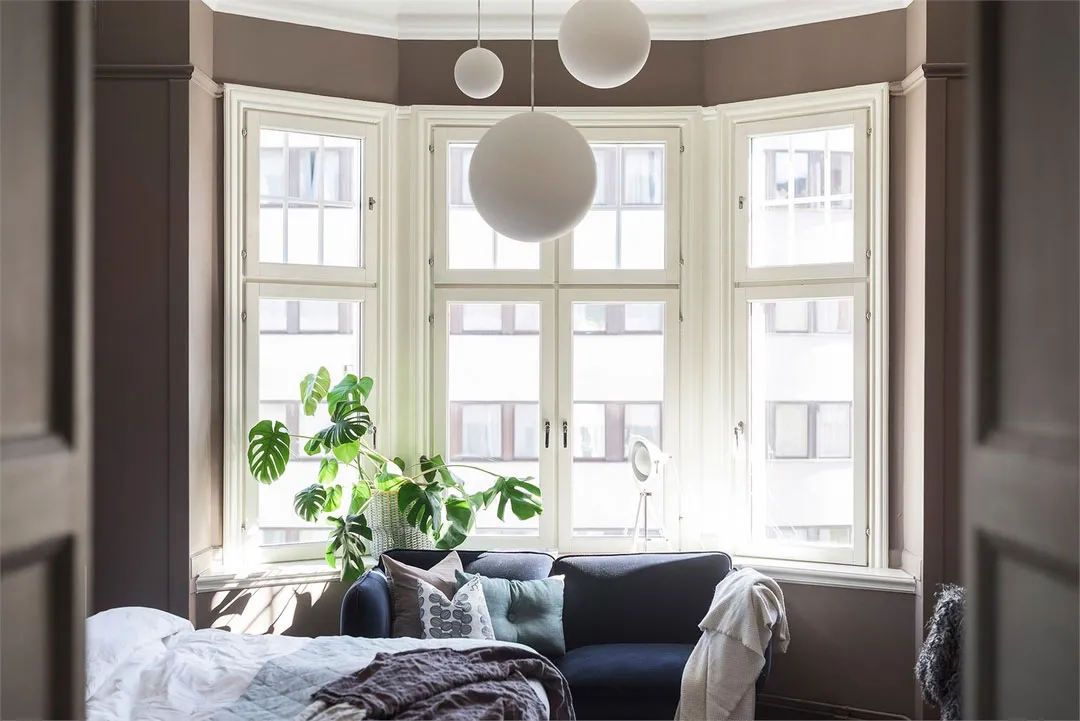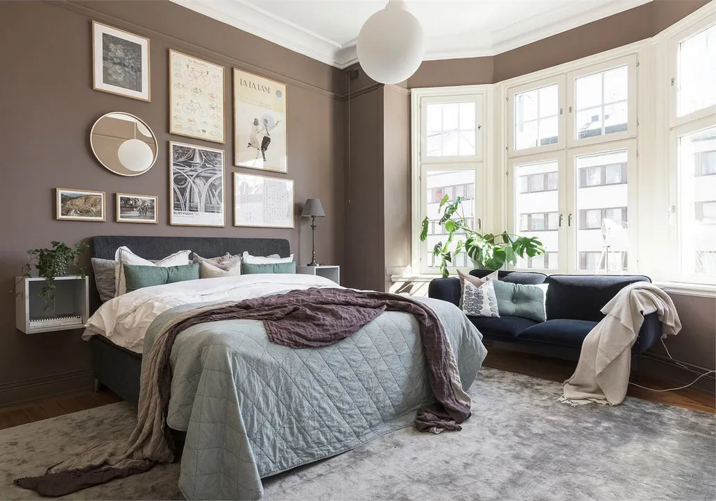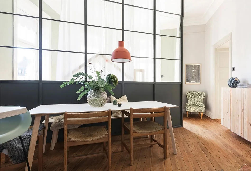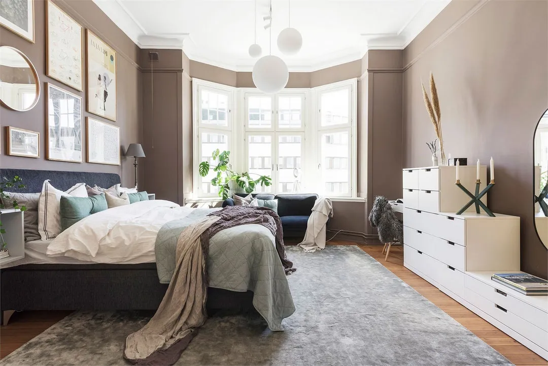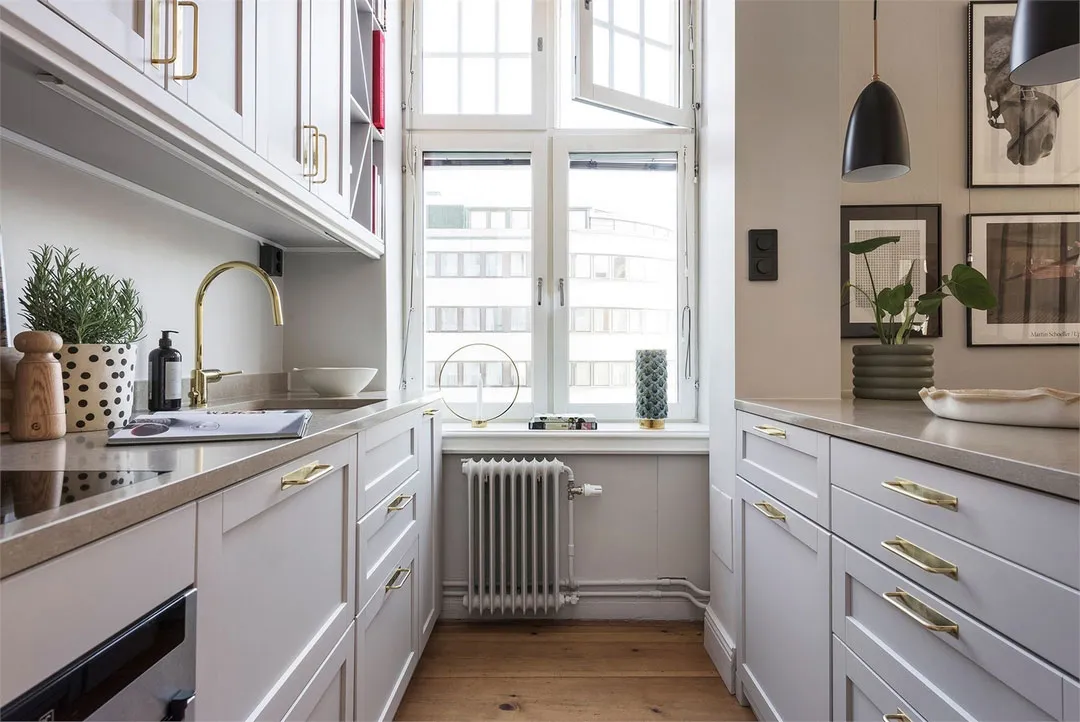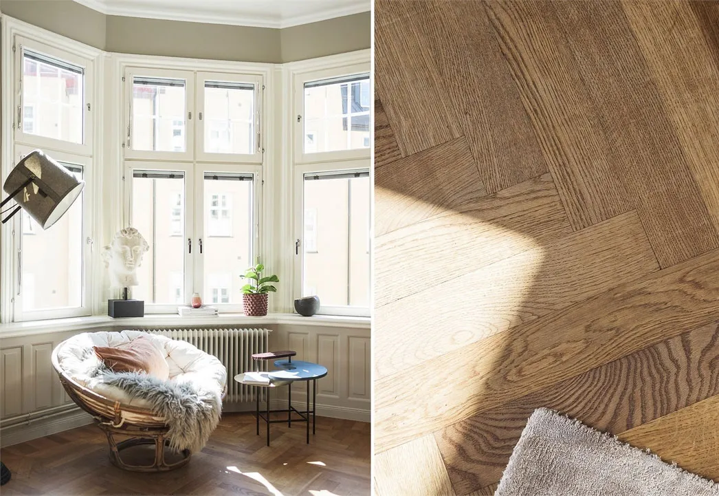 Intérieur ensoleillé à Stockholm avec des accents d'olive (63 m²)
