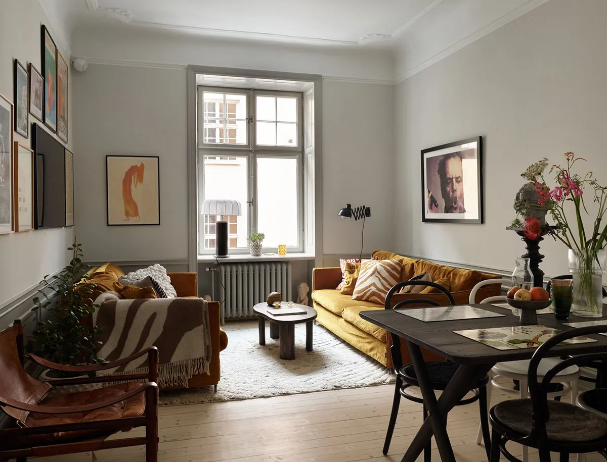 Intérieur Scandinave avec des notes automnales dans le décor (76 m²)