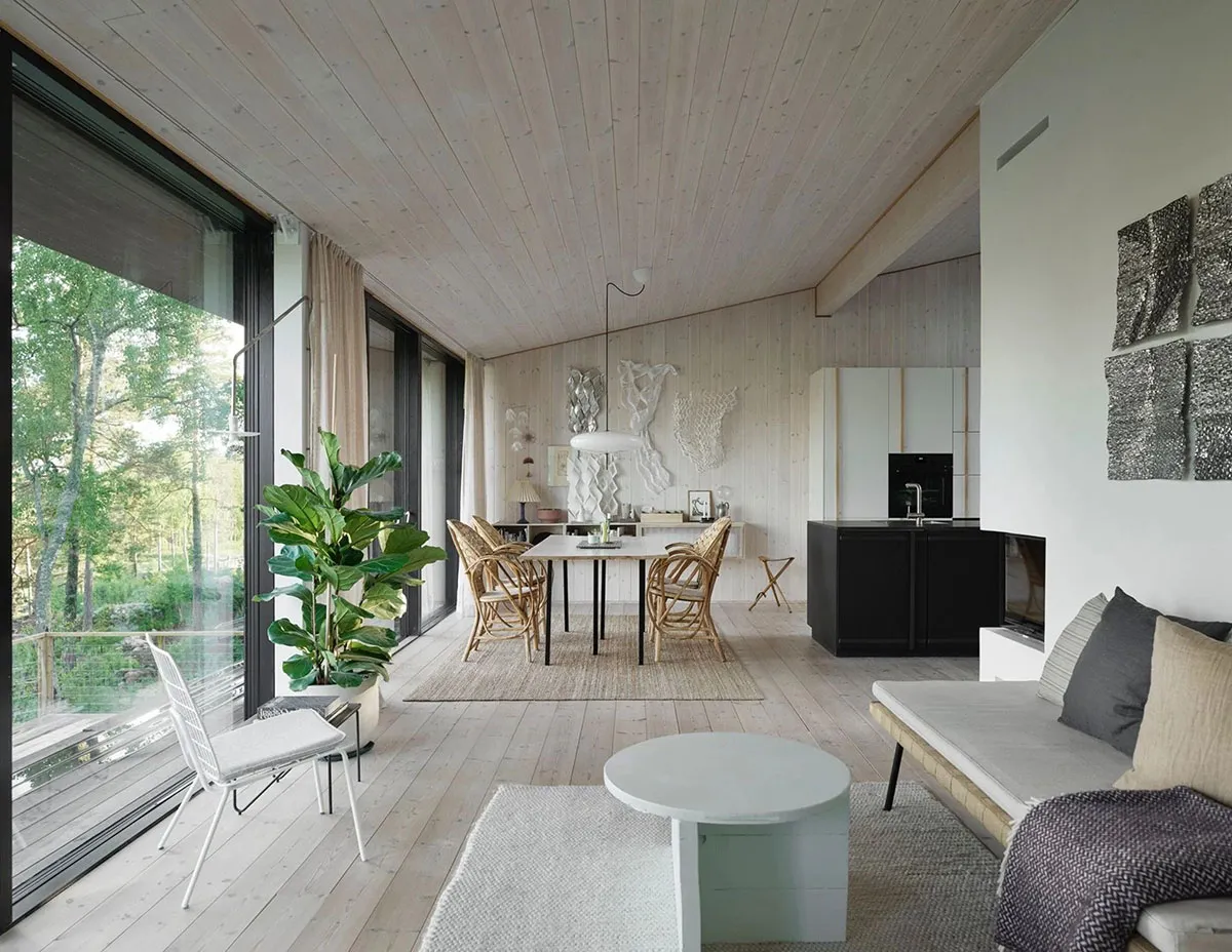 Style de vie scandinave en pleine nature : maison moderne dans la forêt de Suède