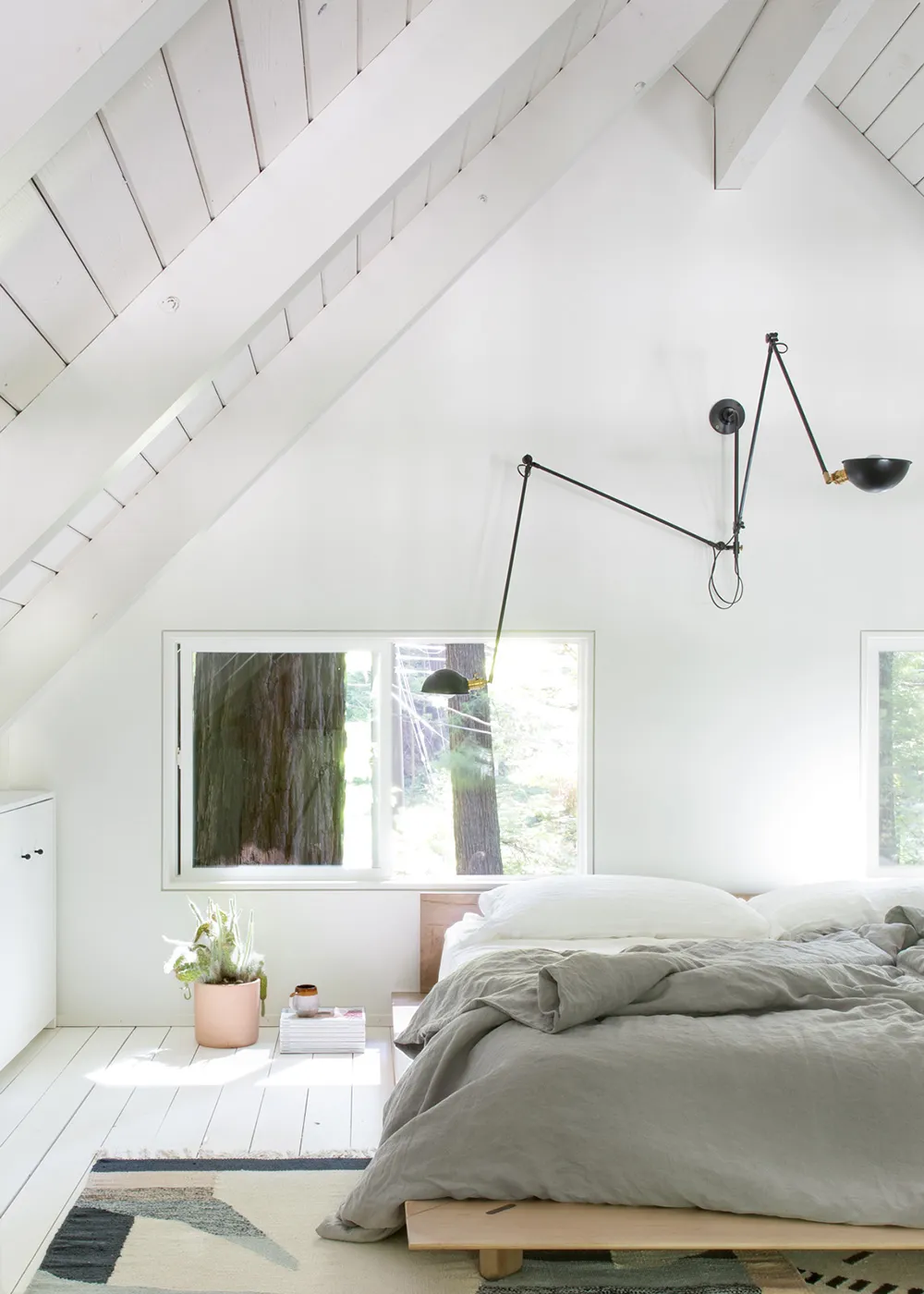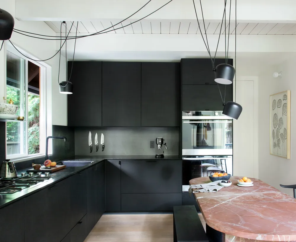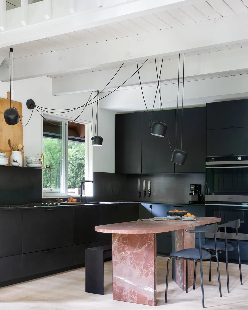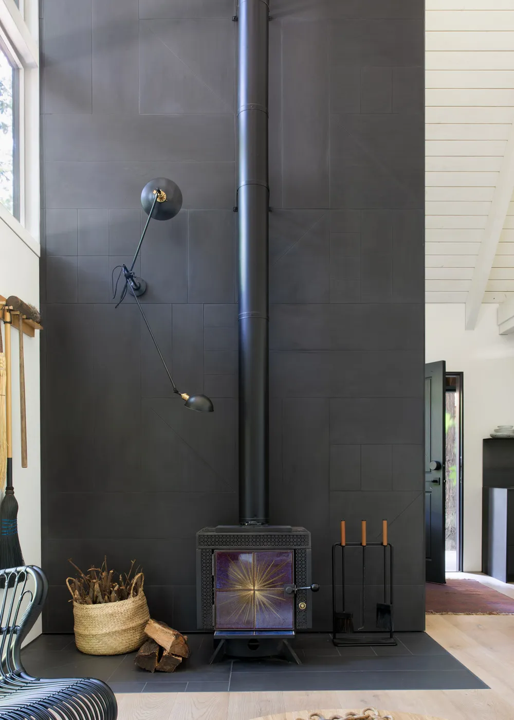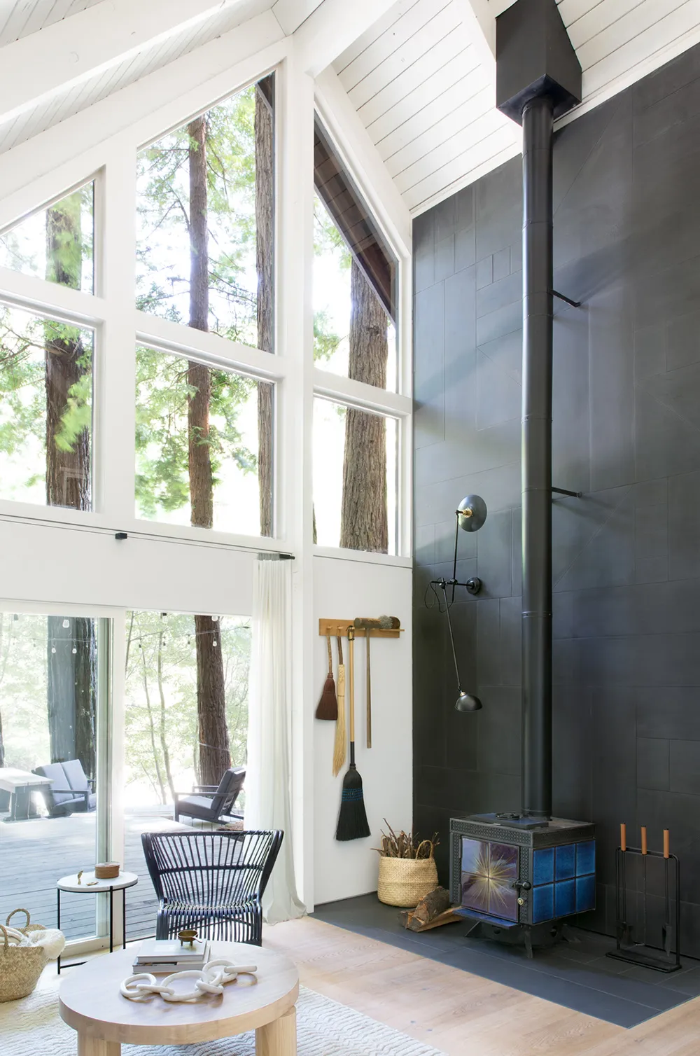 Magnifique cabinette forestier avec intérieur moderne en noir et blanc