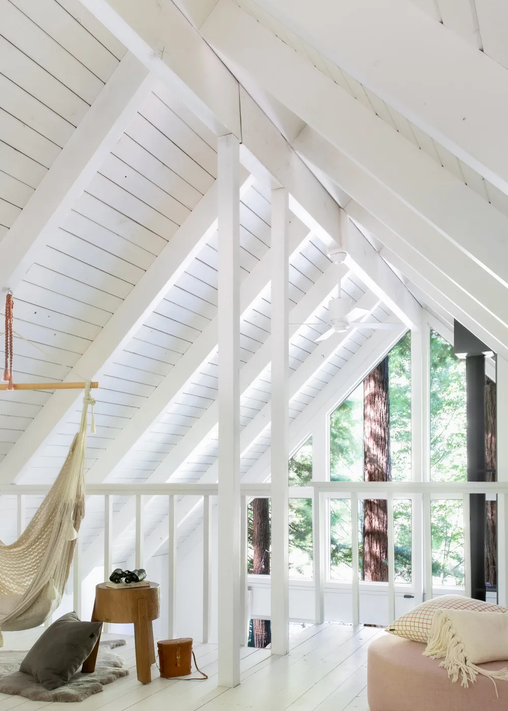 À l'extérieur, ce coquet chalet de forêt semble relativement petit — il est parfaitement intégré au milieu d'arbres hauts, dissimulé des regards curieux.