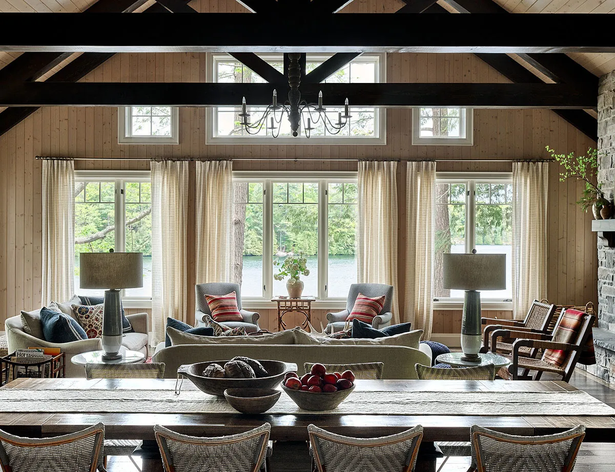 Intérieur exceptionnellement cosy d'une maison en forêt au Canada