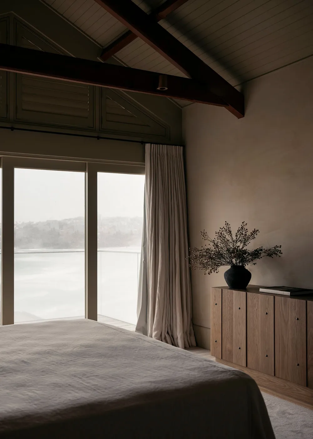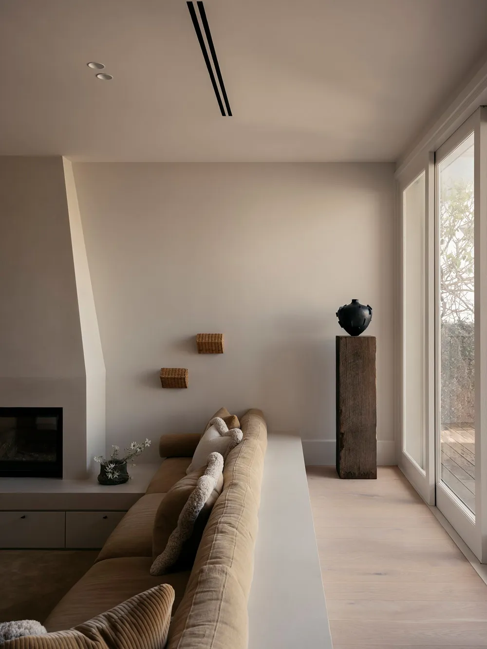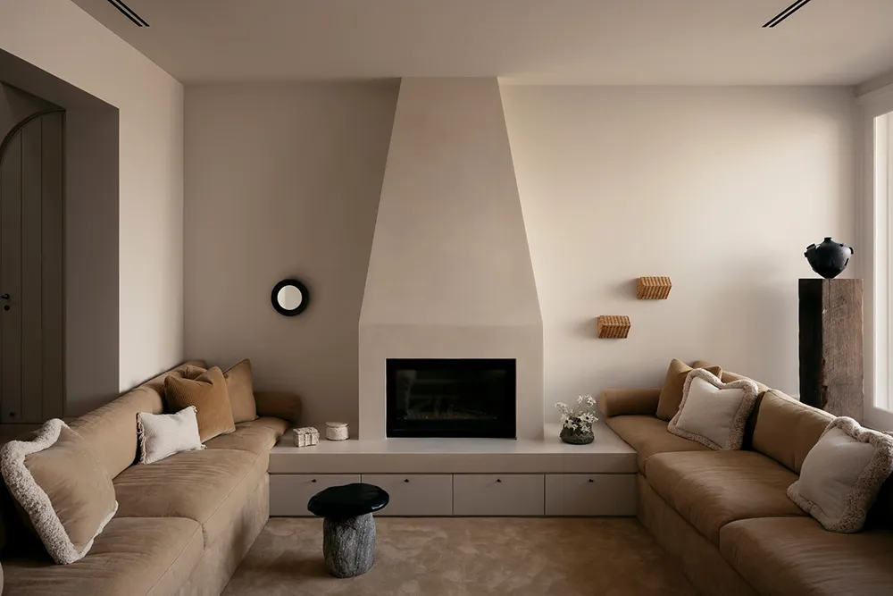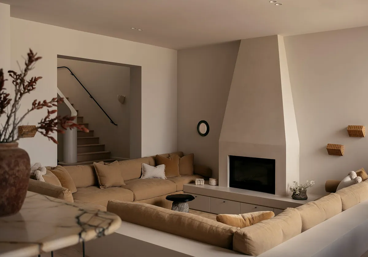 Un espace sobre et élégant dans les tons sable-beige — c'est ainsi que les designers de l'étude australienne Handelsmann + Khaw conçoivent l'extérieur idéal d'une maison côtière.