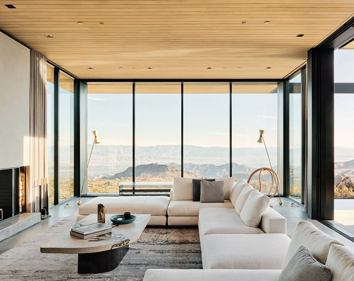 Maison dans le désert de Californie avec piscine et murs en verre