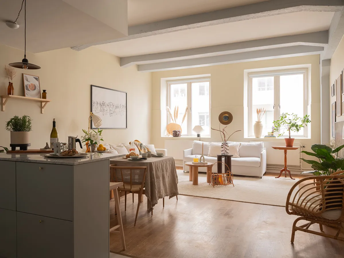 Loft suédois ensoleillé aux murs sableux (62 m²)