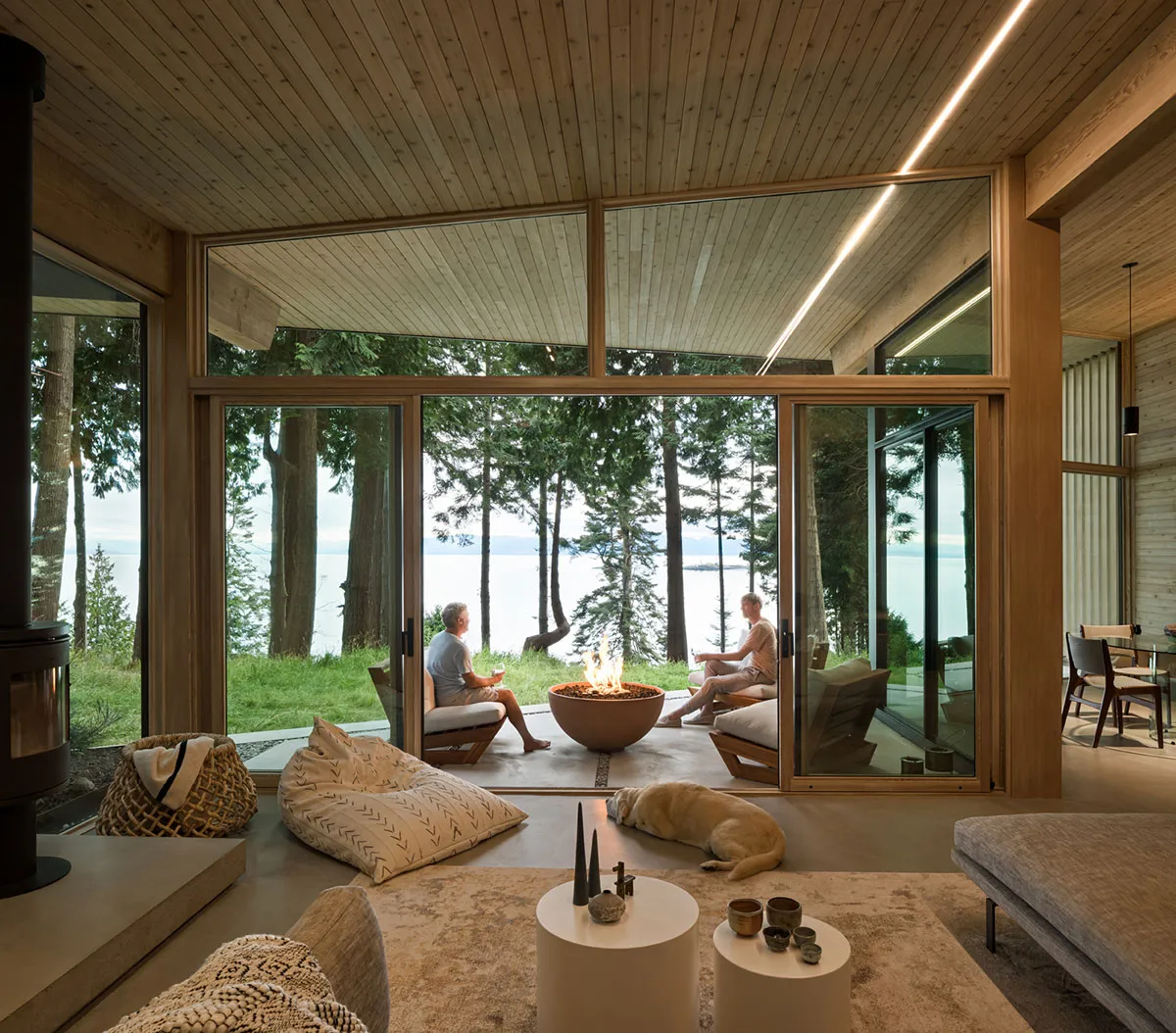 Modern cabin au lac au Canada avec un minimalisme dans la nature