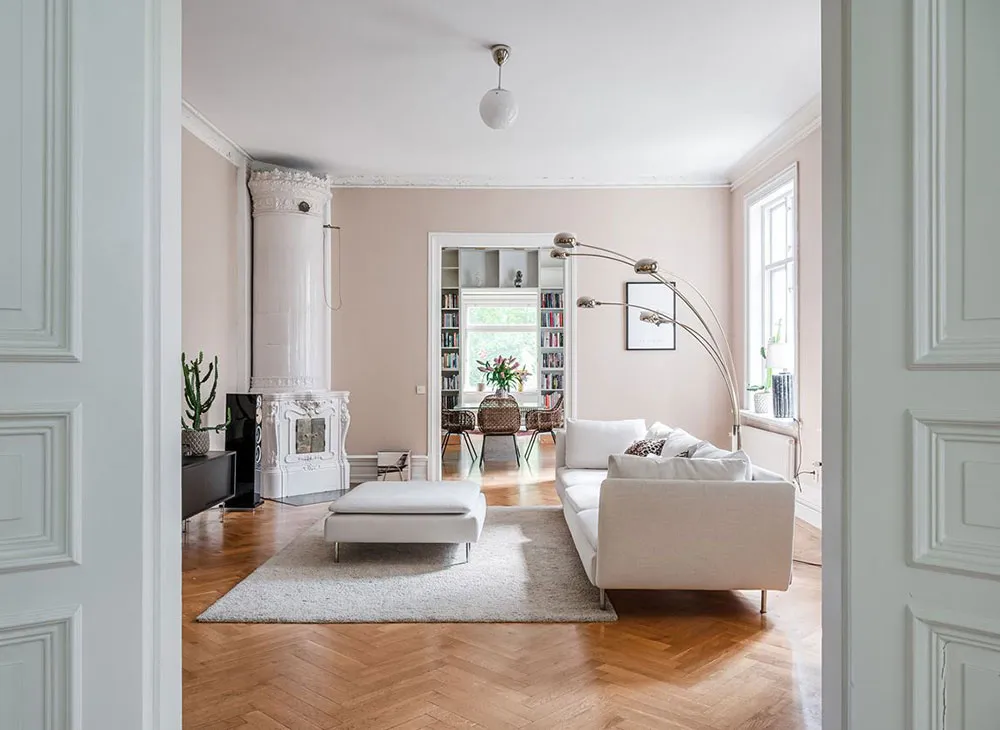 Tons pastel roses, bleus et autres agréables dans les intérieurs de townhouse à Londres
