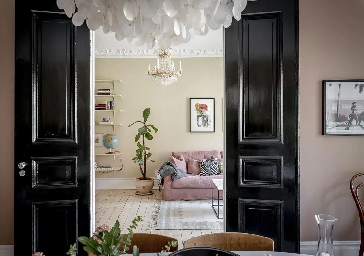 Belles portes noires et teintes intéressantes : appartement à Gothenburg (74 m²)