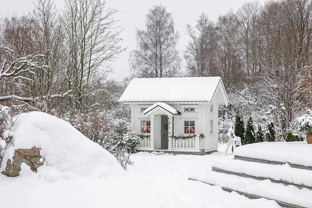 Blanc et dans la neige : un magnifique cottage près de Göteborg