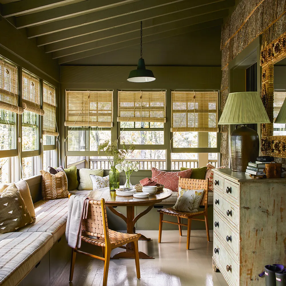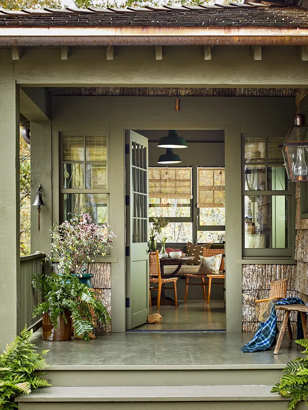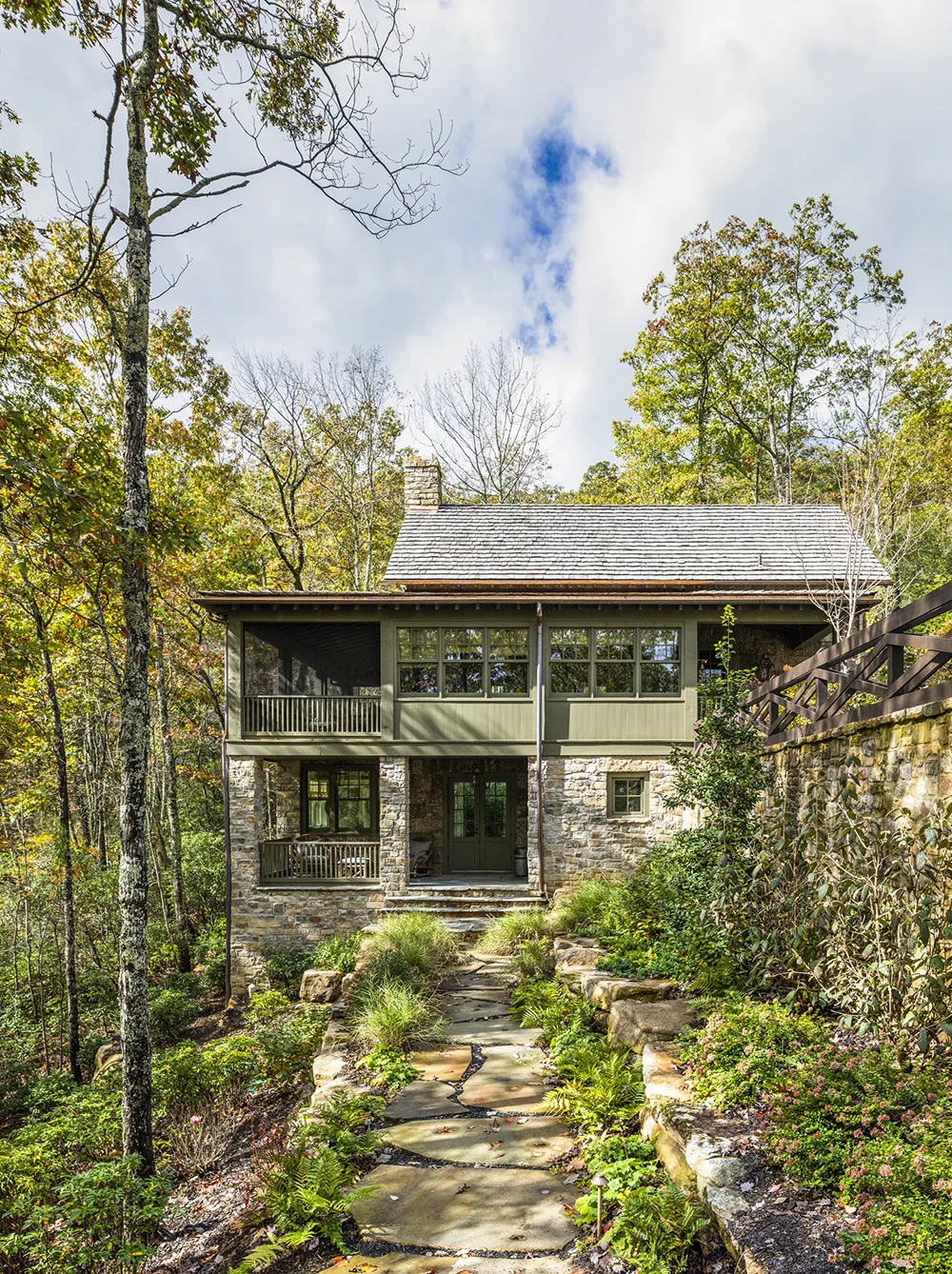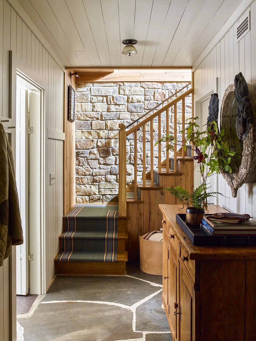 Malgré la rigueur de l'extérieur de ce cottage forestier dans l'État du Tennessee (les architectes, il faut le reconnaître, ont tenté de faire en sorte que son aspect extérieur s'intègre dans la nature locale), ses intérieurs sont assez colorés.