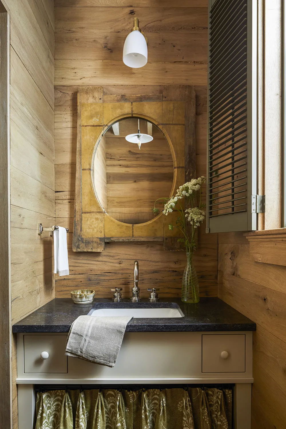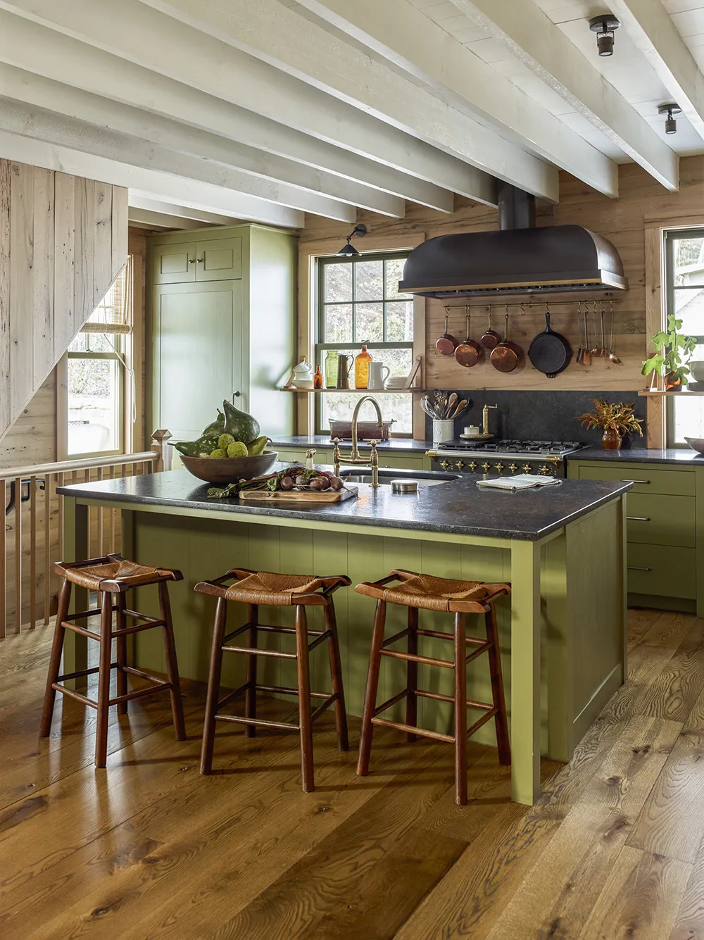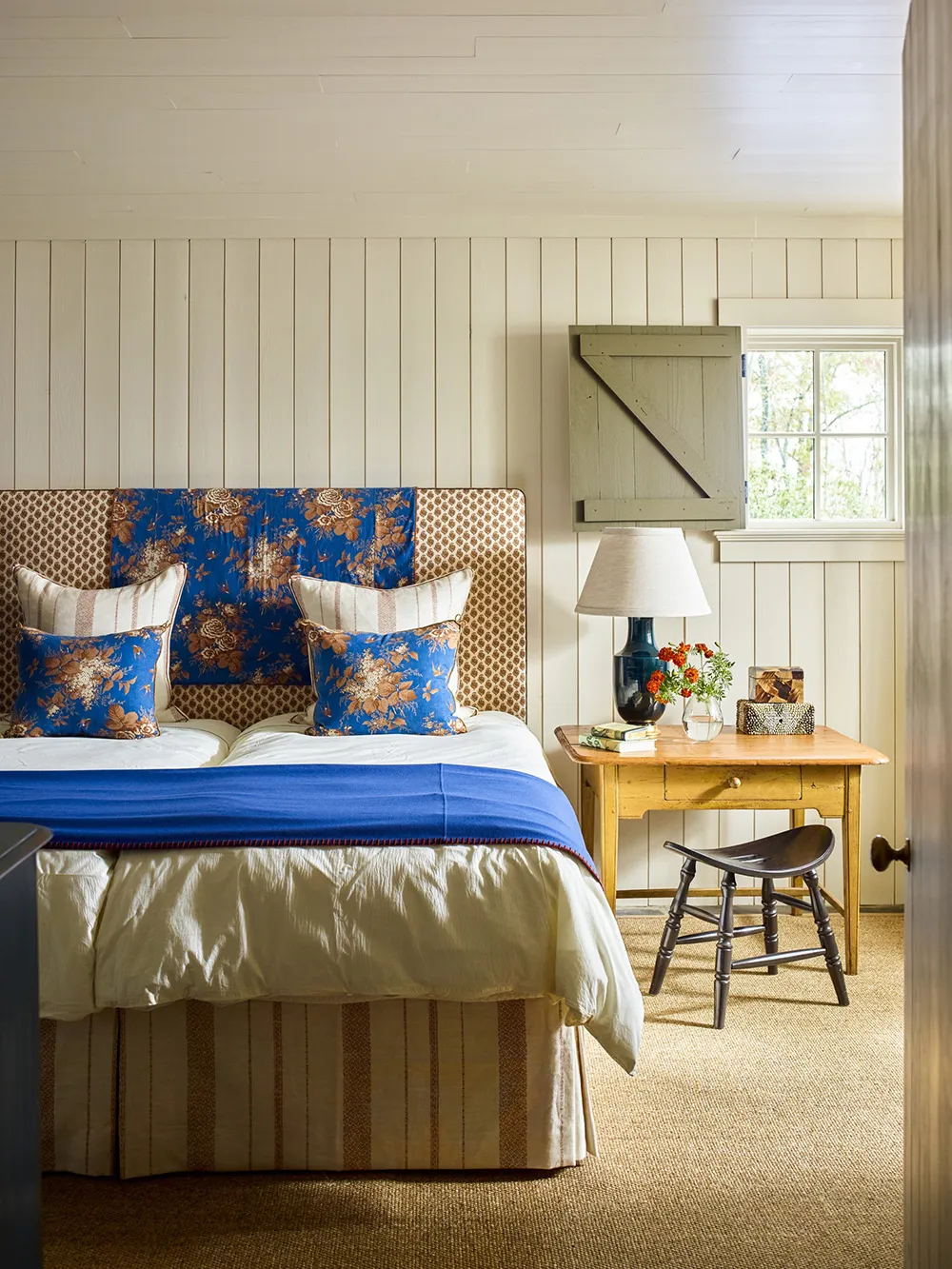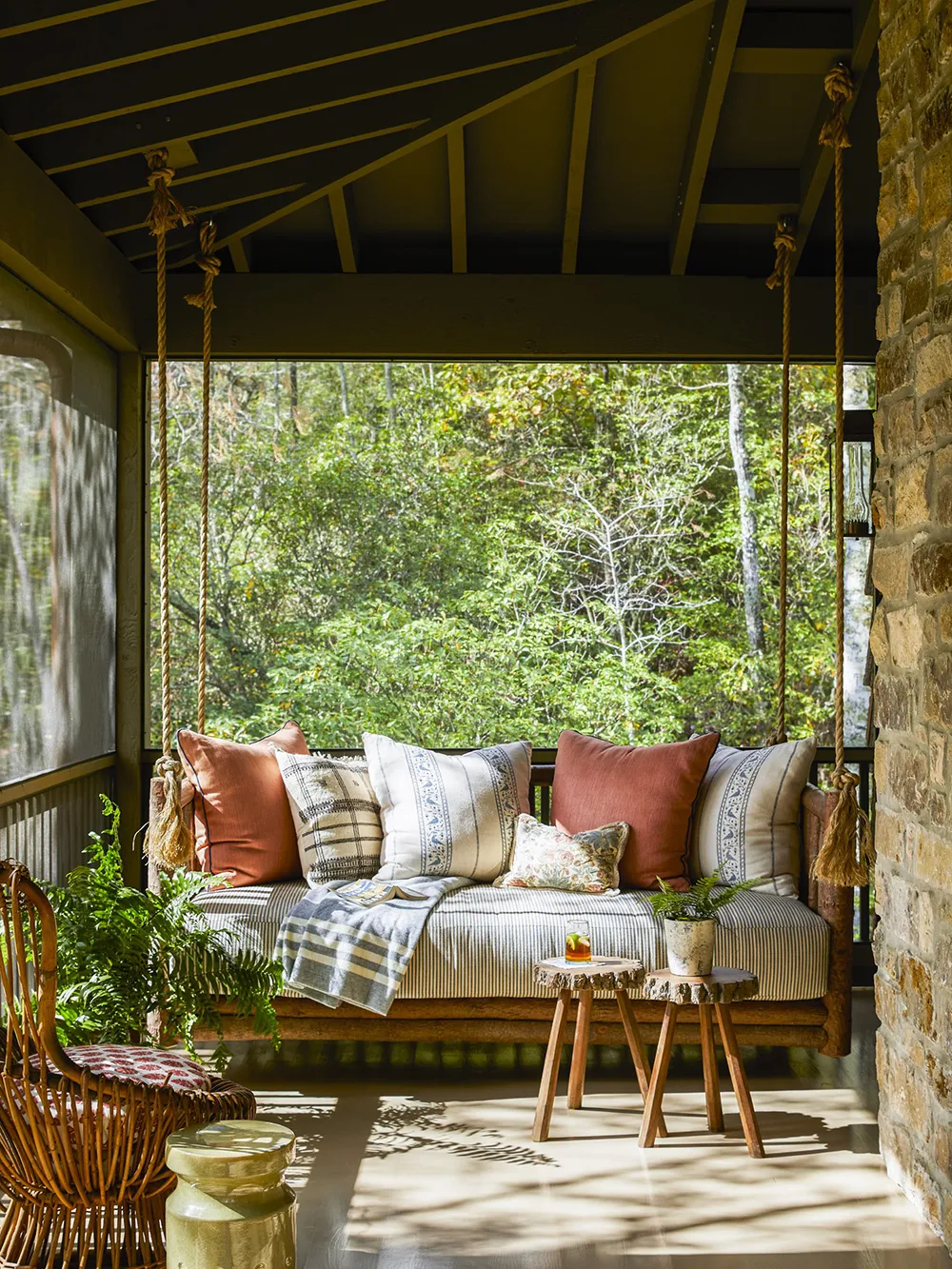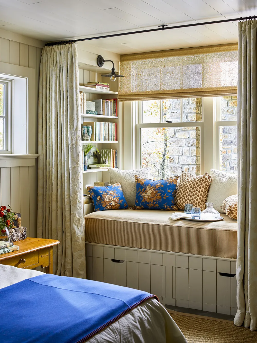 Malgré la rigueur de l'extérieur de ce cottage forestier dans l'État du Tennessee (les architectes, il faut le reconnaître, ont tenté de faire en sorte que son aspect extérieur s'intègre dans la nature locale), ses intérieurs sont assez colorés.