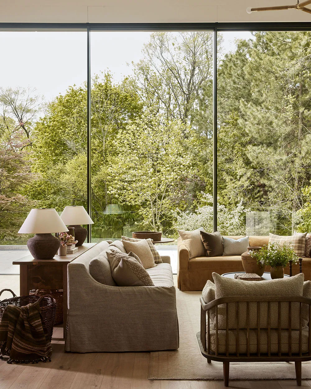 Bois, arcs et grandes baies vitrées : un intérieur magnifique dans une maison au Canada