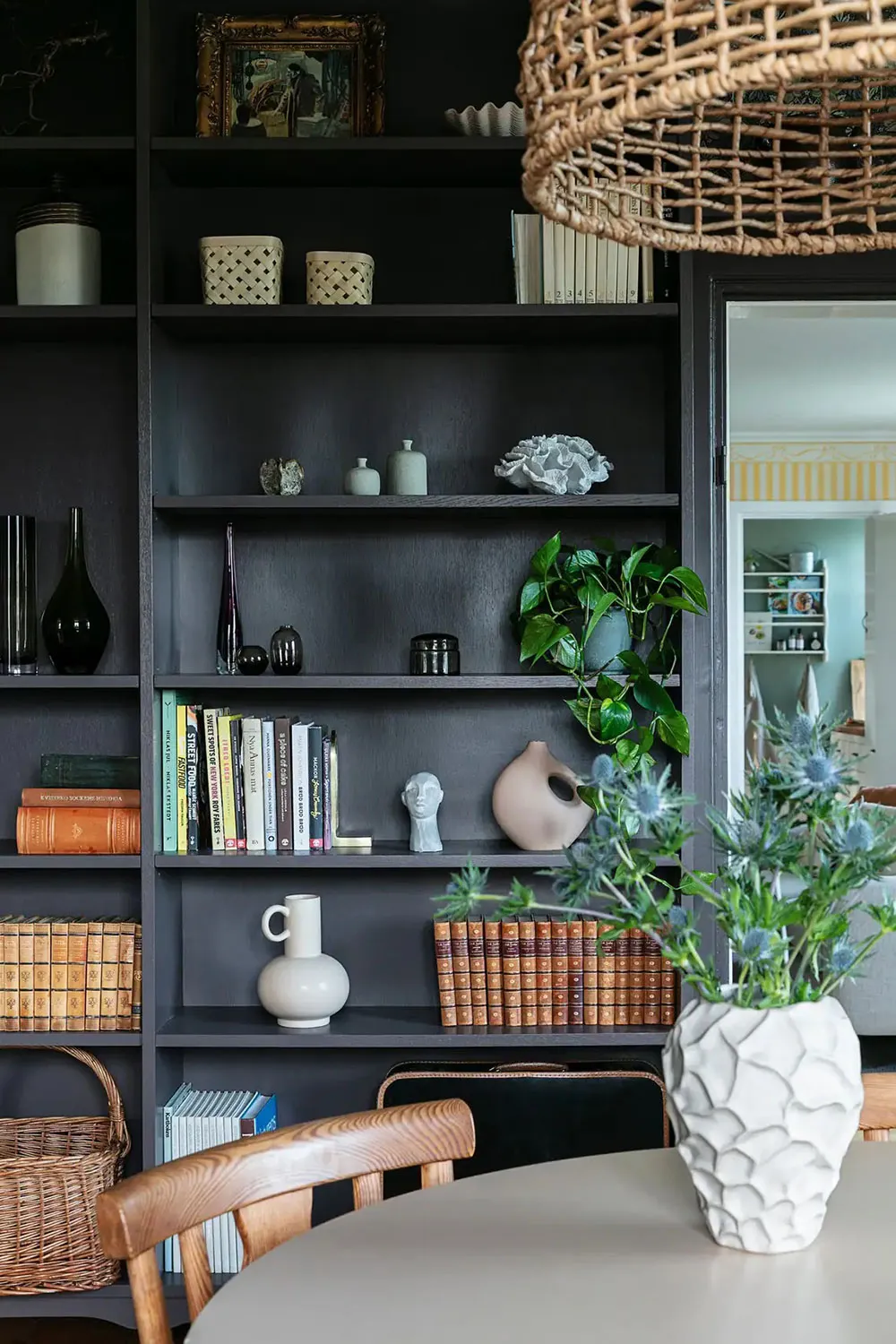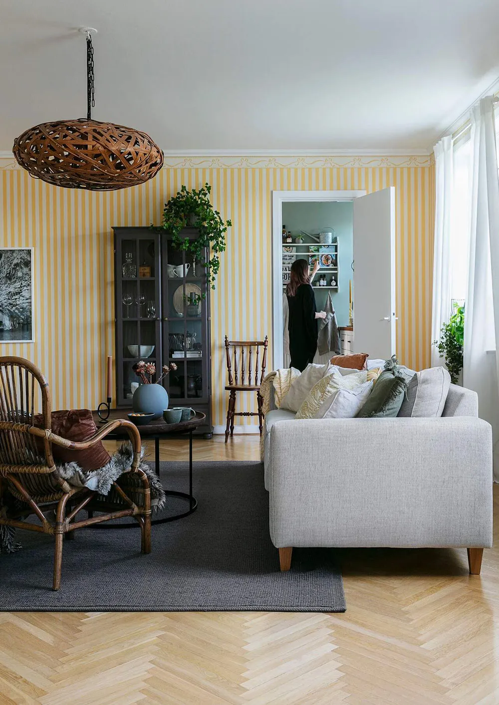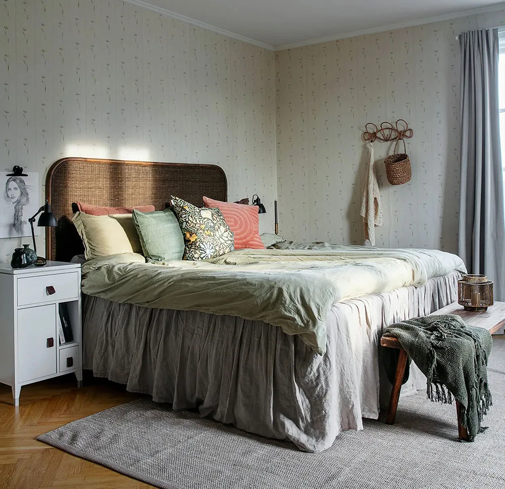 Canapé rose et cuisine noire : appartement coloré à Göteborg (99 m²)