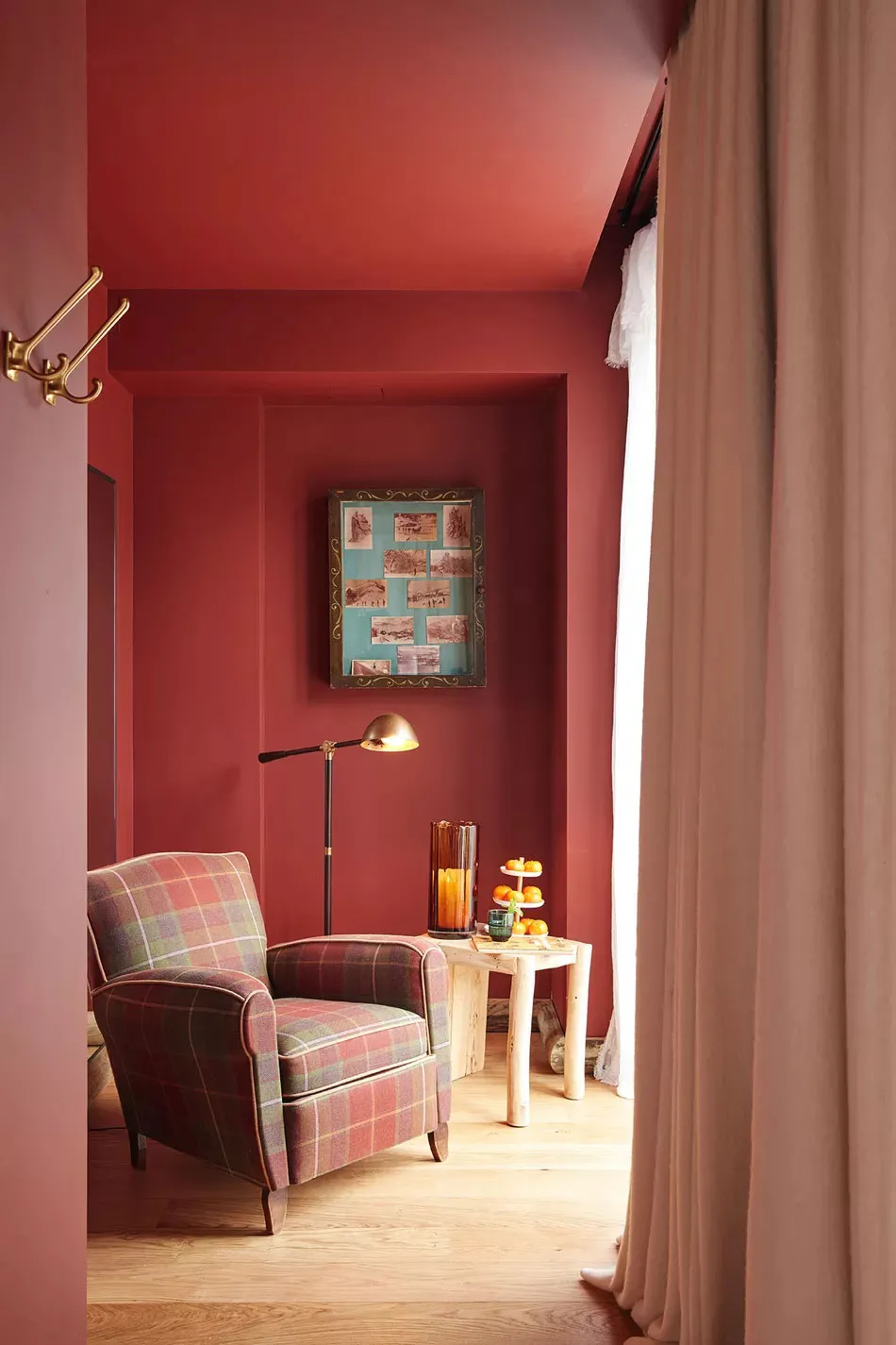 Salle de séjour rose pâle et autres curiosités dans la maison d'un designer en Californie
