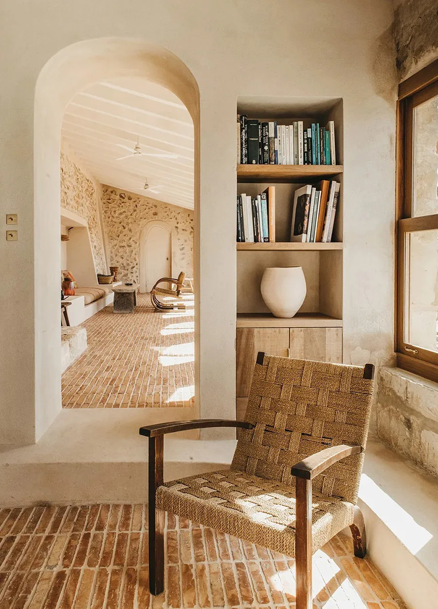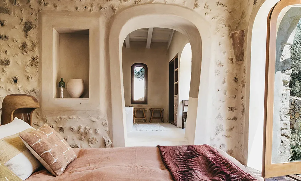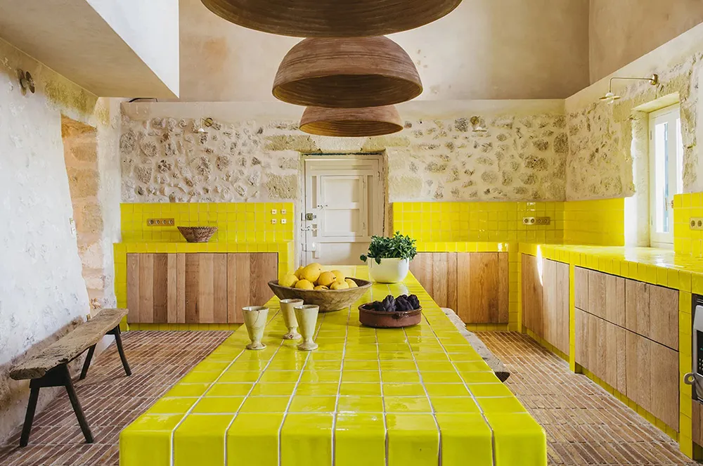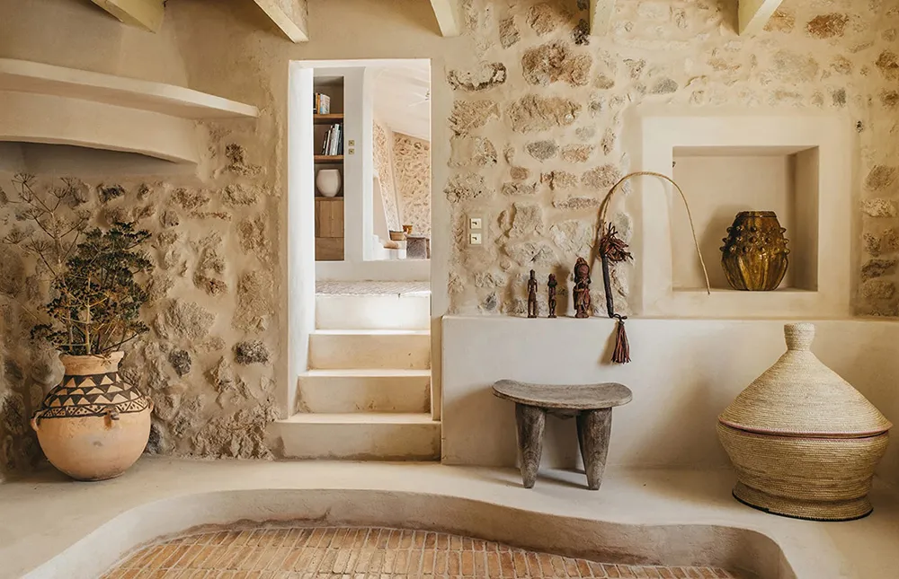 Intérieur chaleureux avec des accents colorés : maison traditionnelle sur Minorque
