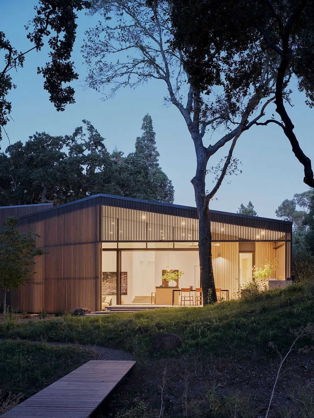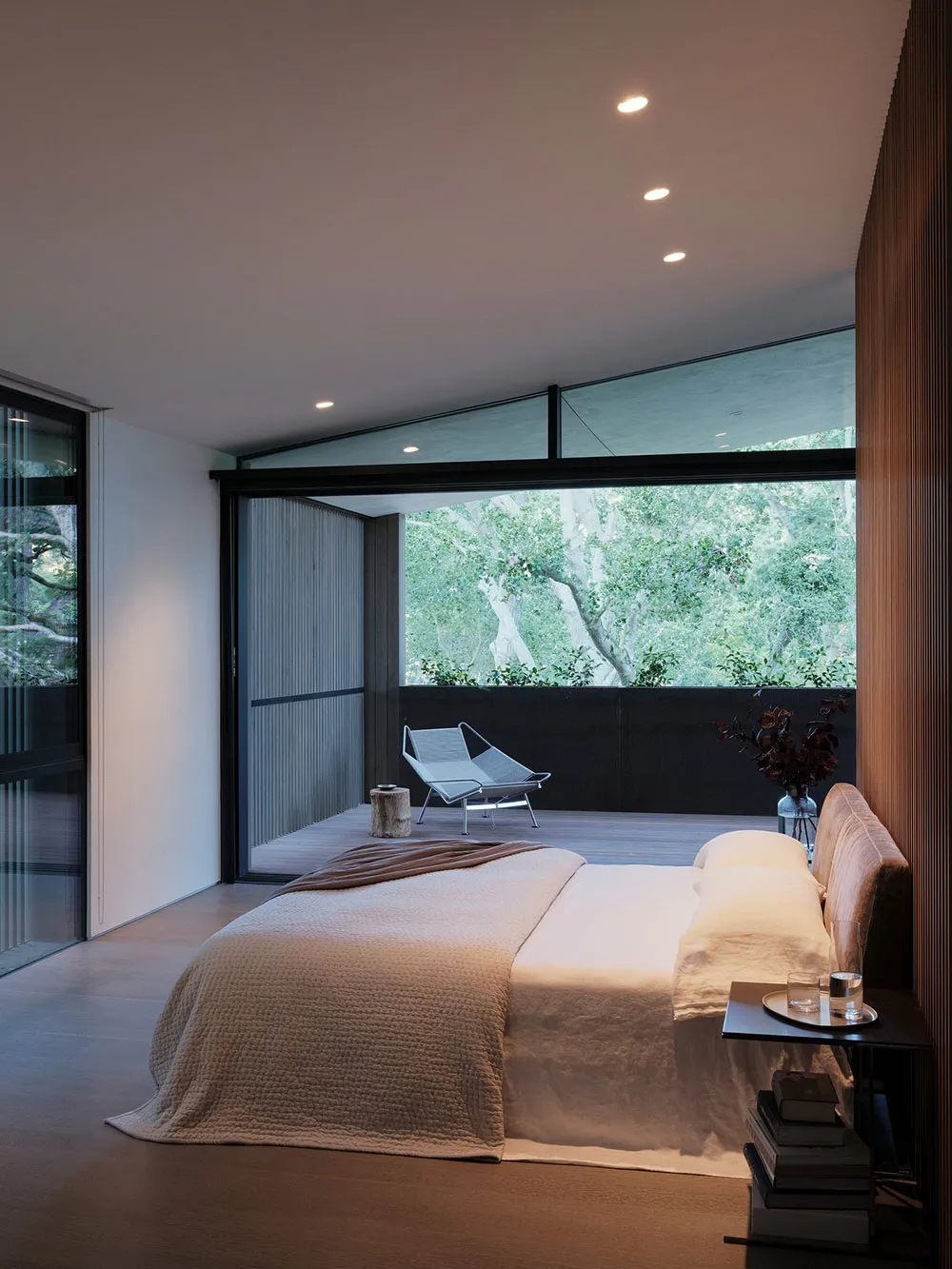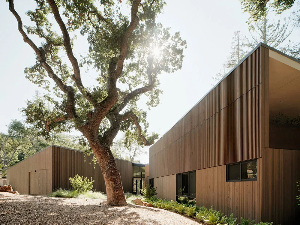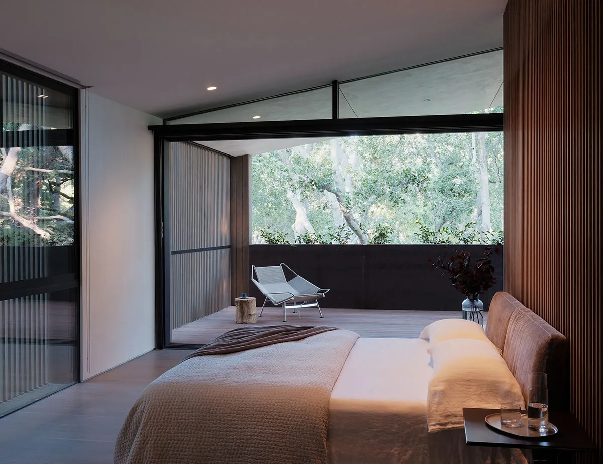 Ce merveilleux logement moderne en Californie est situé au cœur d'une forêt, entouré de tous côtés par des arbres. Les architectes ont décidé de ne pas se fermer à la nature intacte, mais plutôt d'interagir au maximum avec elle.