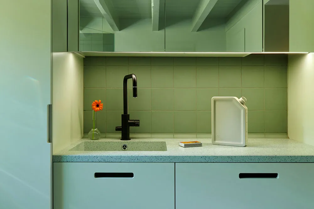 Style moderne d'intérieur gris pour une petite appartement de 39 m² avec salon passant