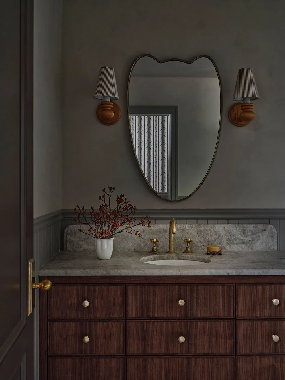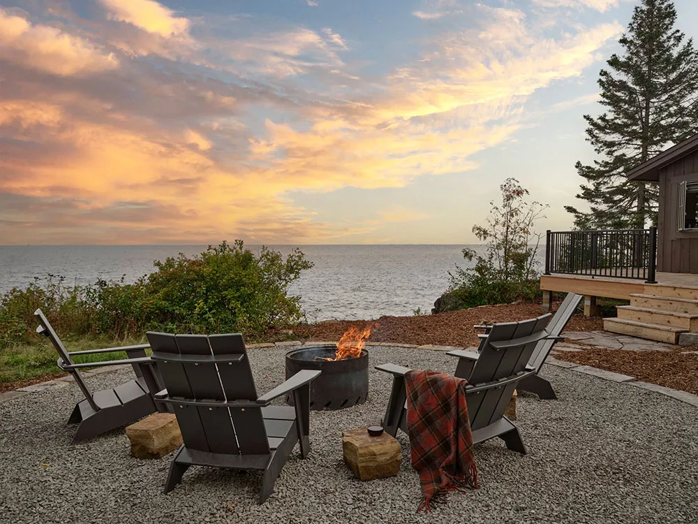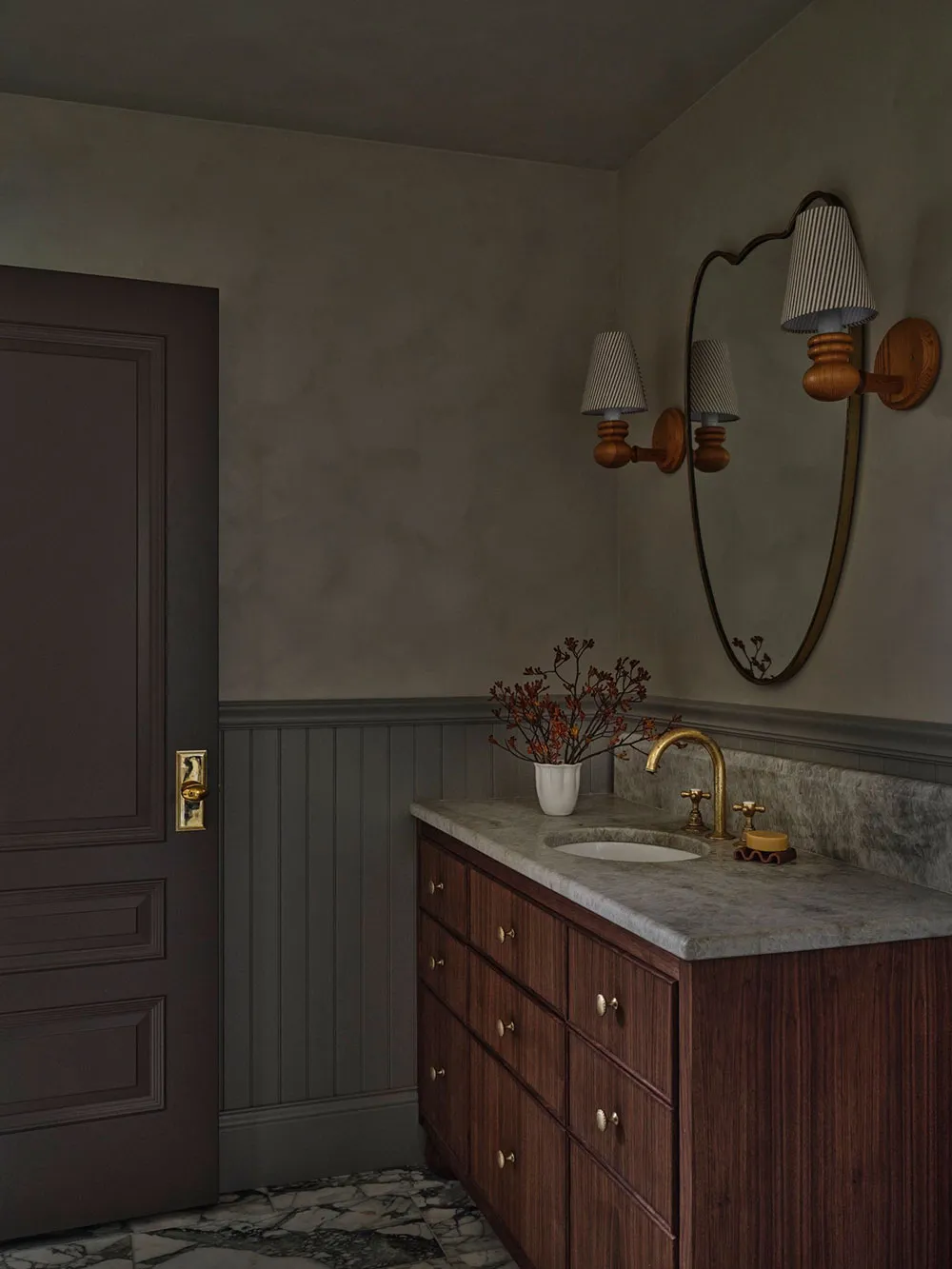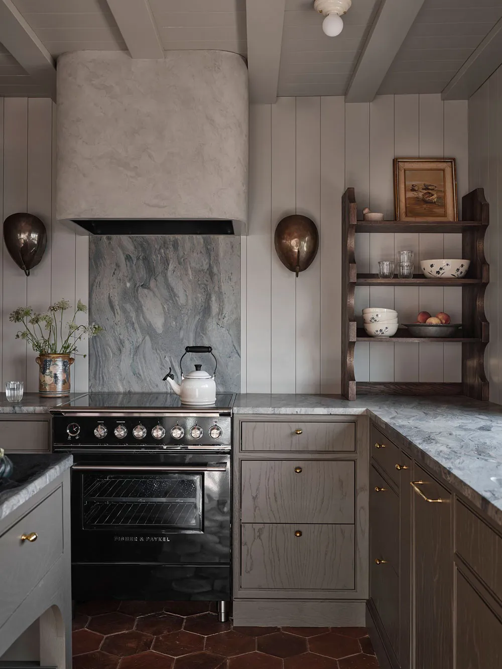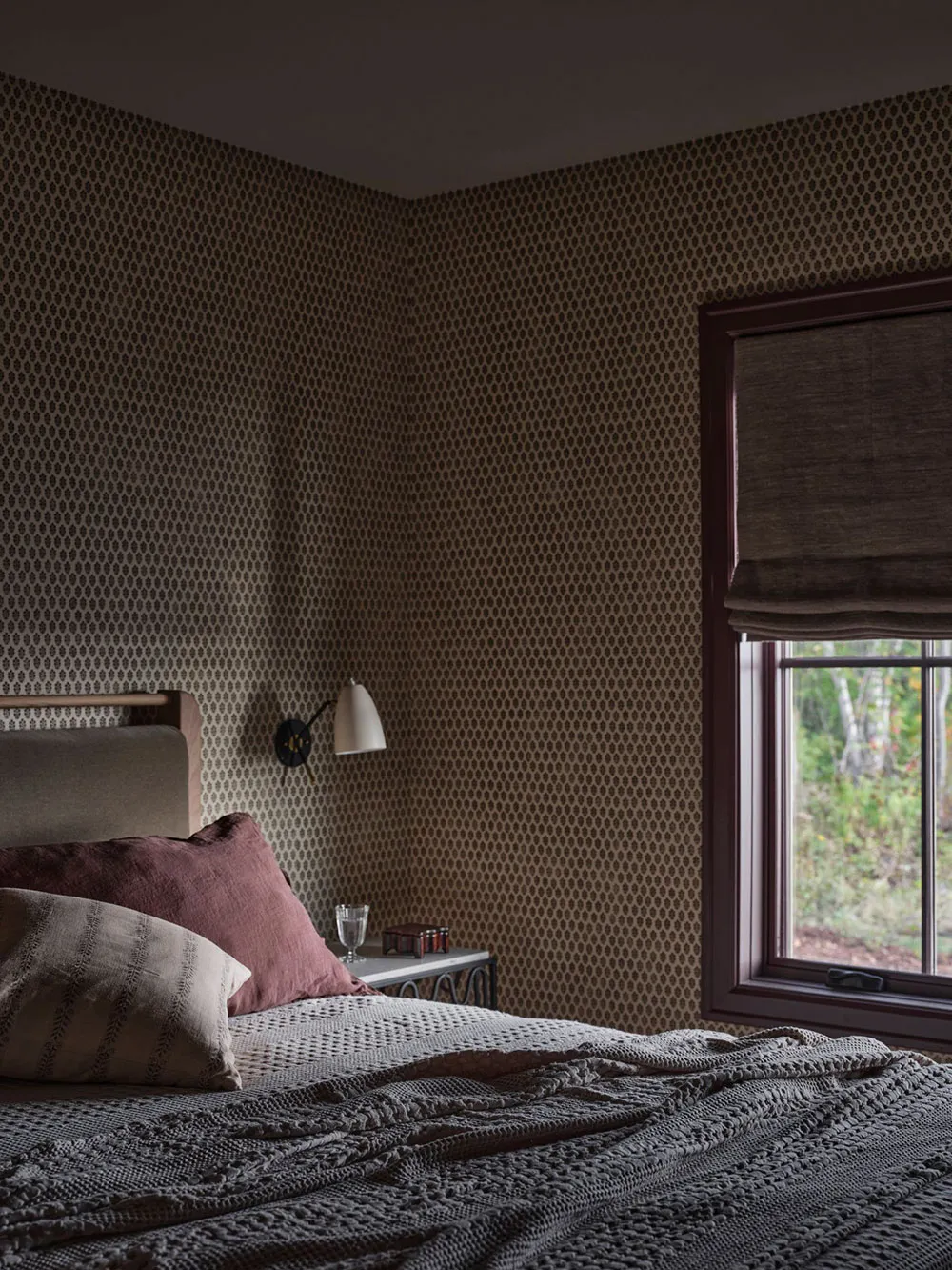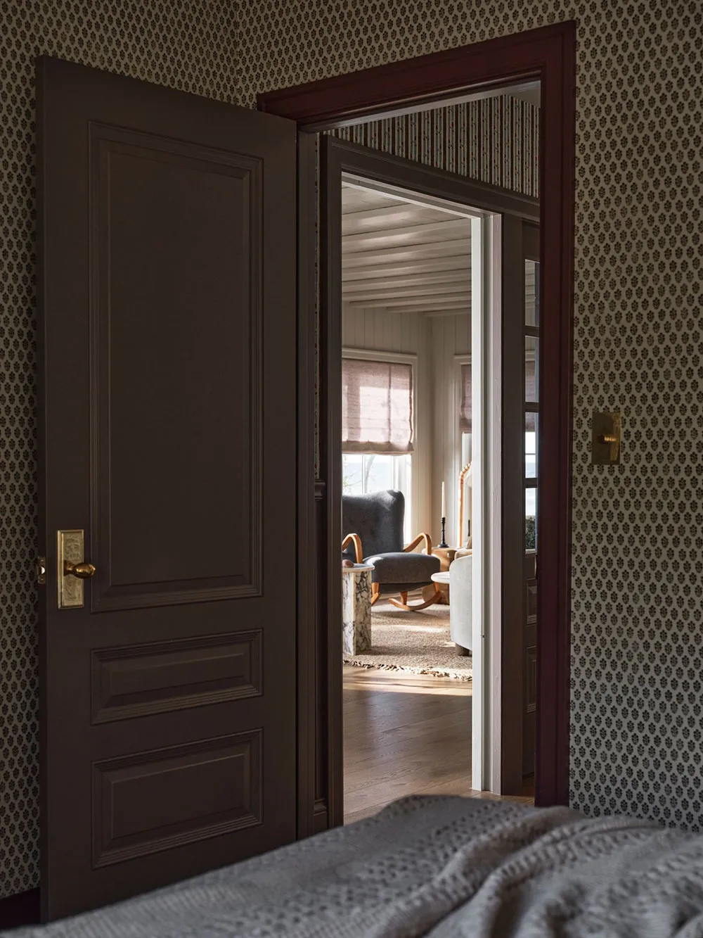 La gamme de couleurs de ces intérieurs de villa côtière dans l'État du Minnesota est composée de teintes terroires élégantes qui créent une atmosphère particulière et atténuée dans la maison.