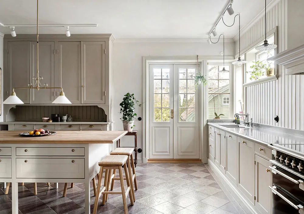 Éléments de style industriel dans le design d'une maison de campagne suédoise traditionnelle