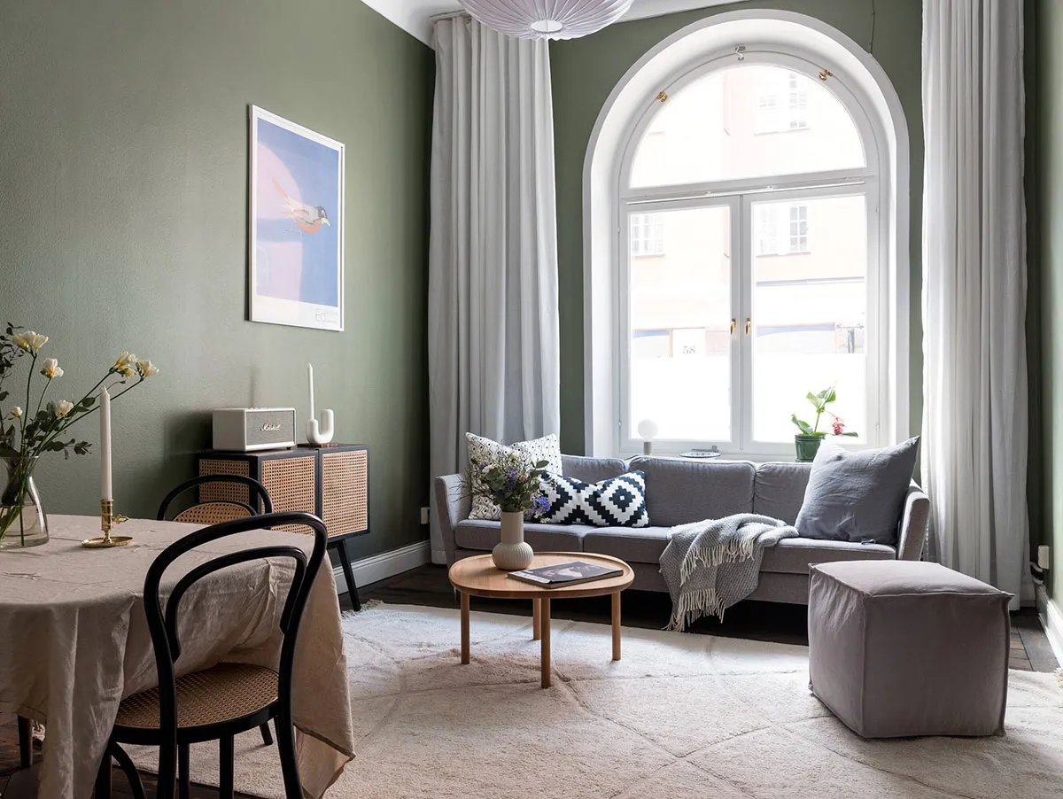 Hautes murs et fenêtre arquée : petite mais intéressante appartement à Stockholm