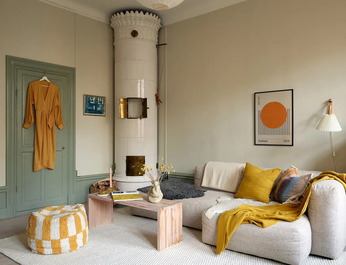 Petite appartement suédois avec des accents olivâtres (41 m²)