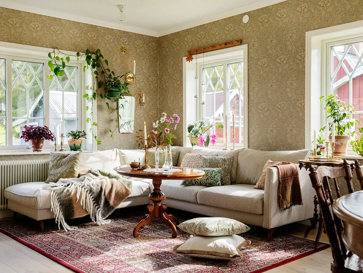 Fenêtres, trouvailles de marchés aux puces et mobilier ancien : un cottage charmant des années 1920 en Suède
