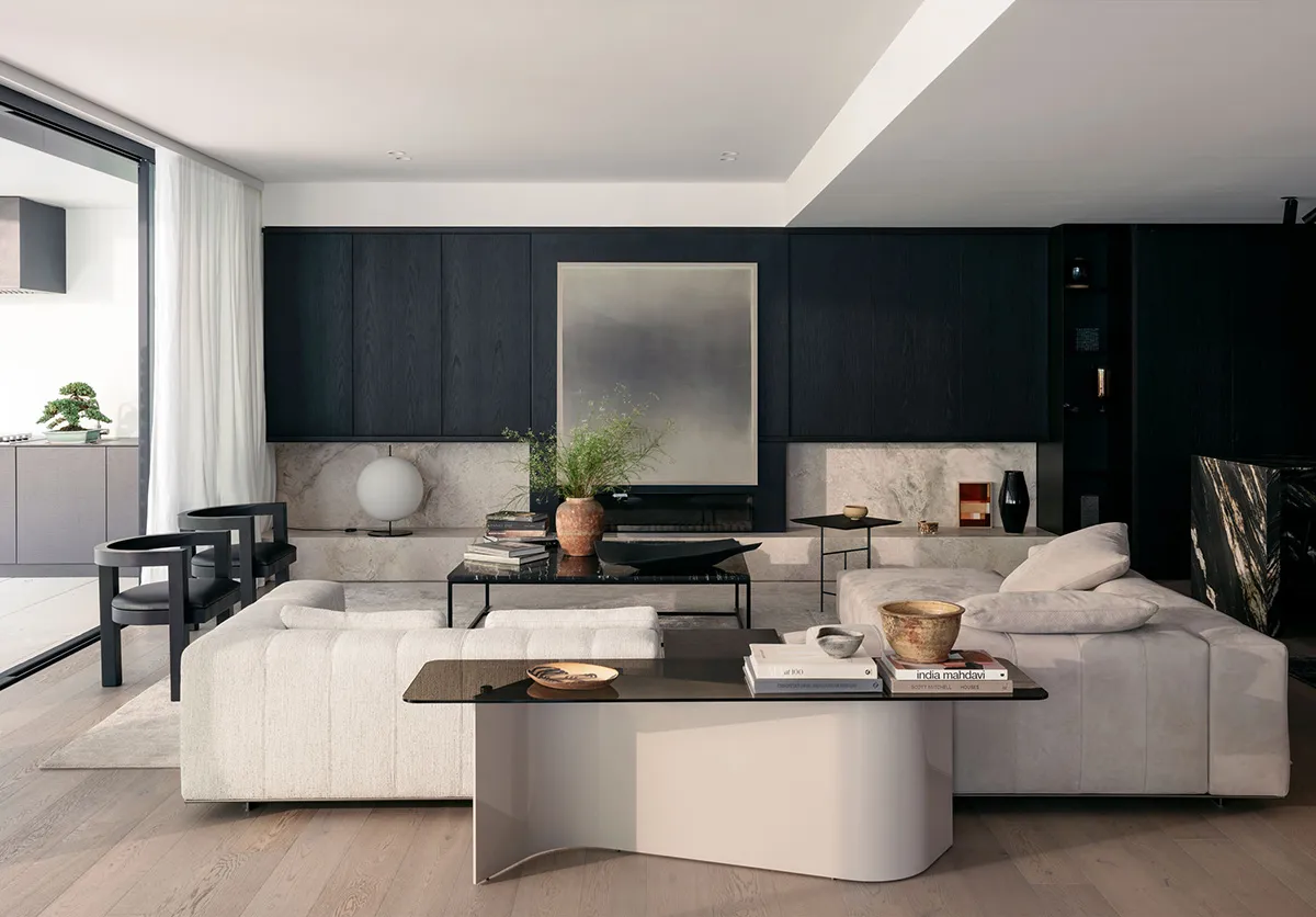 Pierre naturelle et accents noirs : appartements élégants avec jardin à Sydney