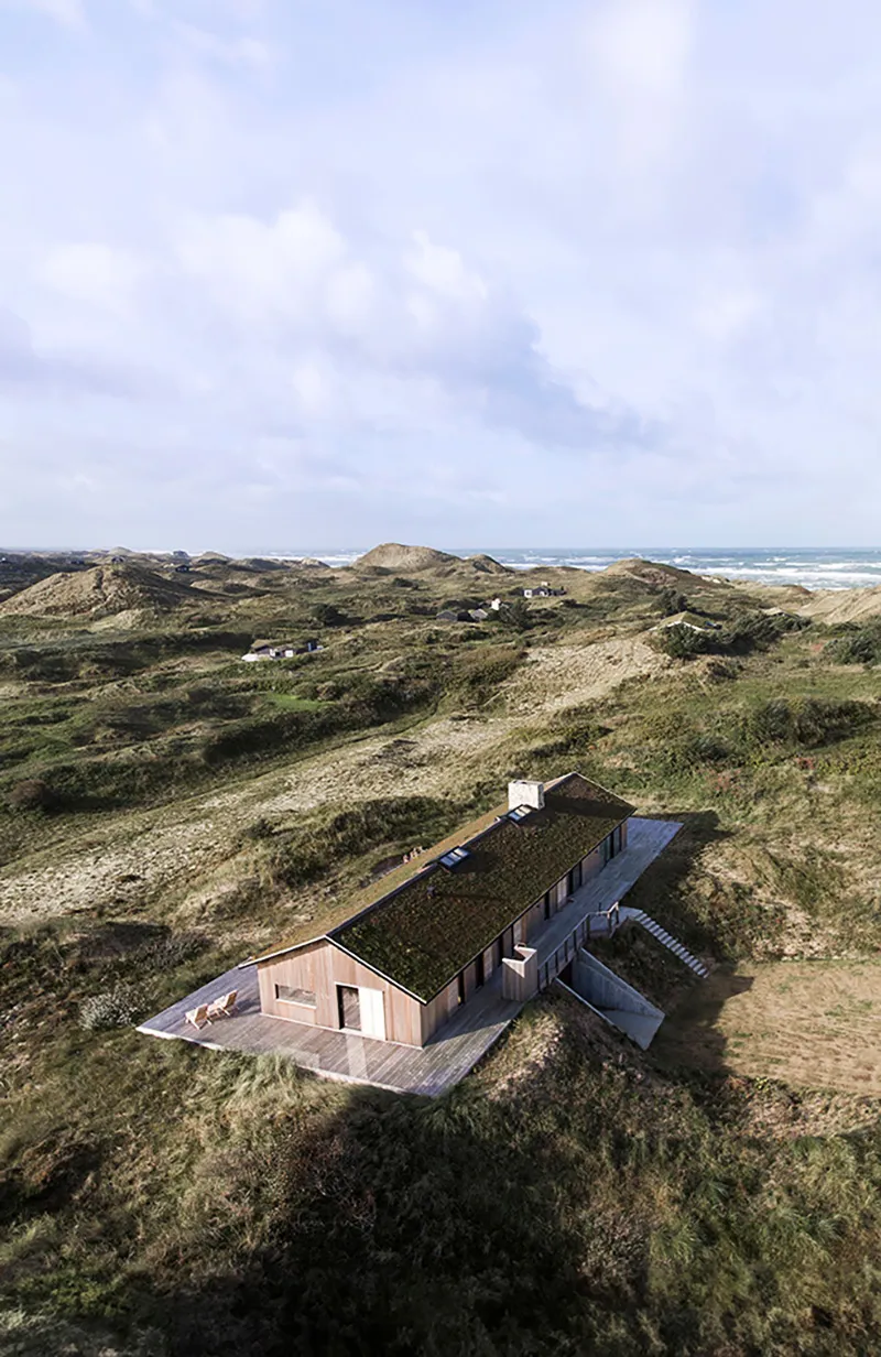 Cottage en bois dans les dunes côtières de la mer du Nord en Danemark