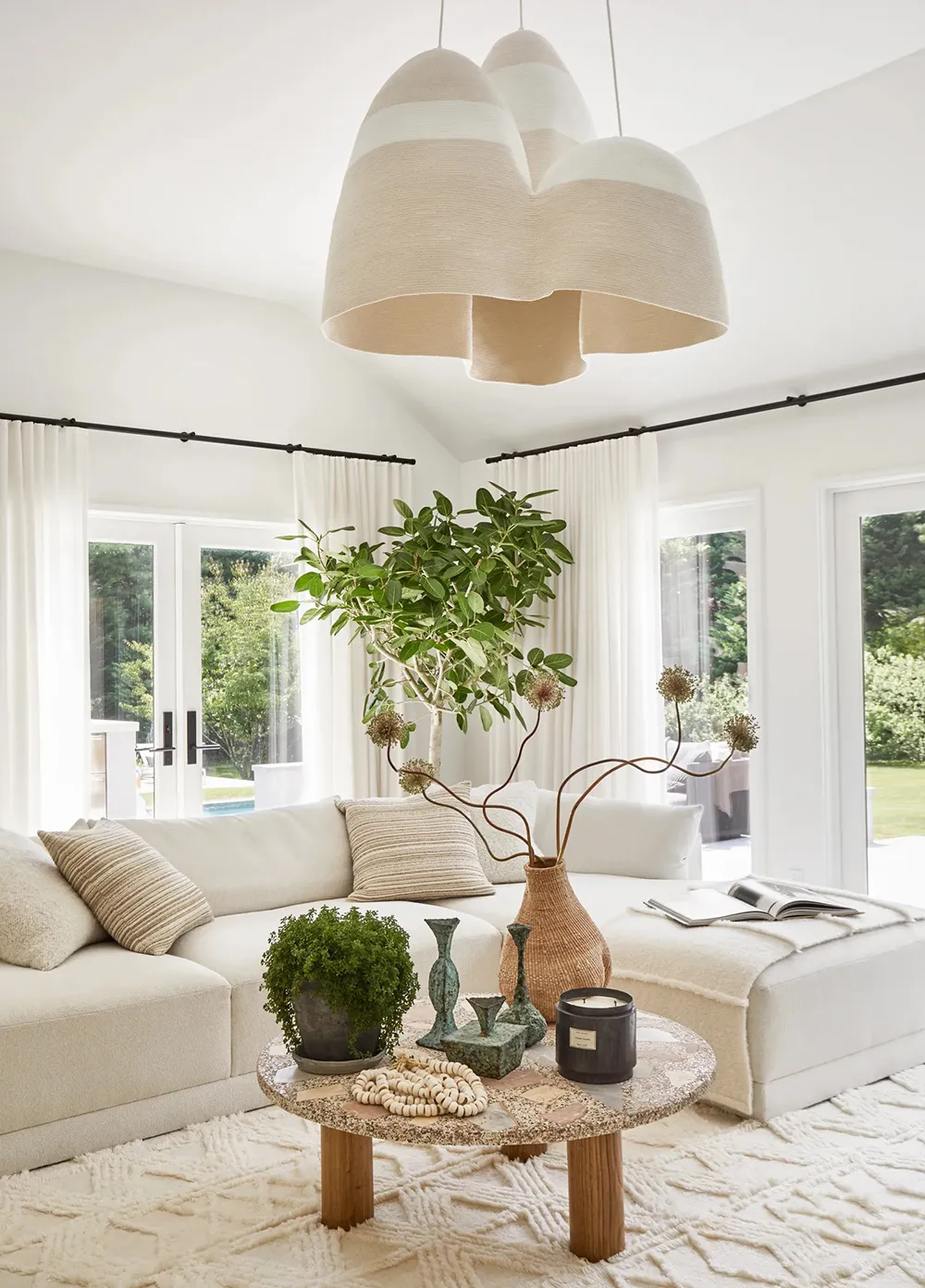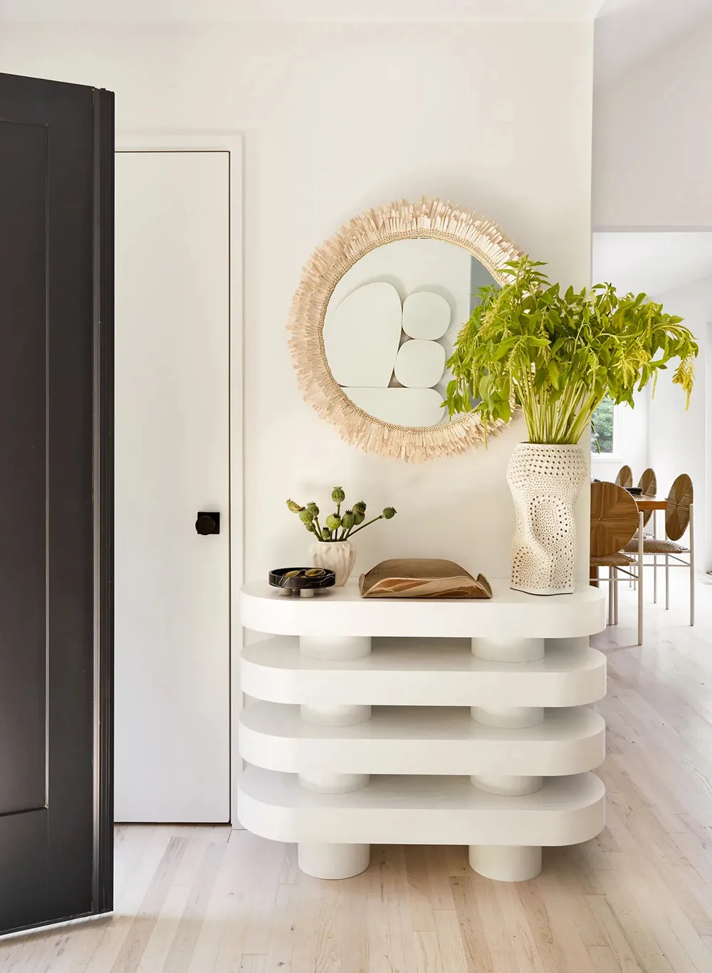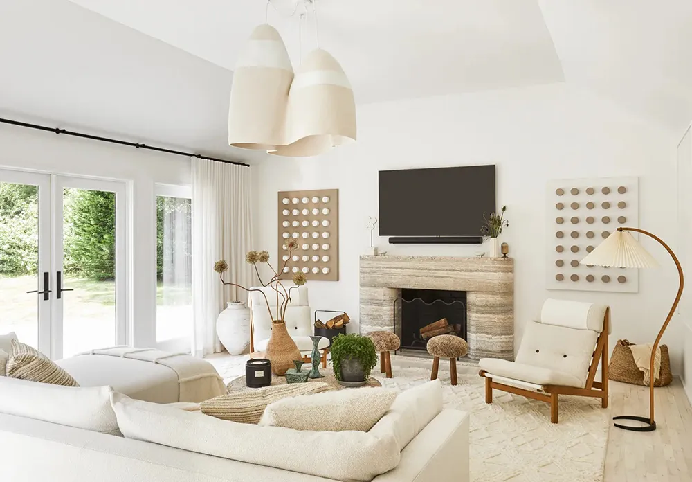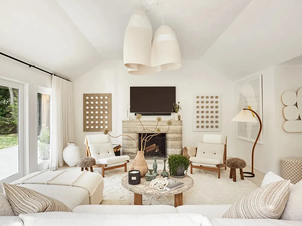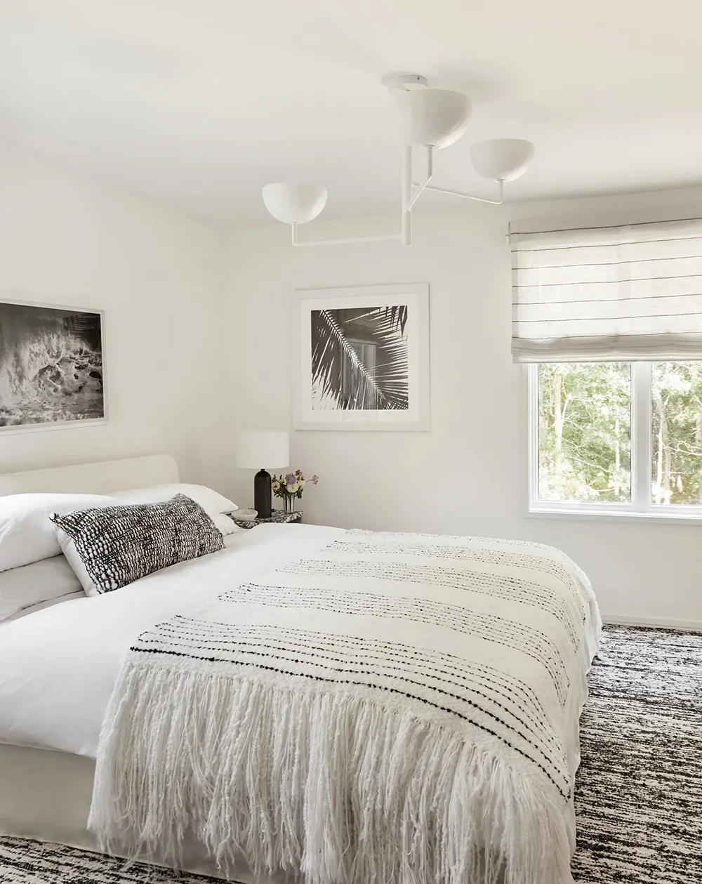 Il semble que les intérieurs laitiers blancs et aériens ne soient pas du tout ce à quoi on s'attendait en voyant ce facade moderne et sobre en bois, comme celui de cette maison sur Long Island.