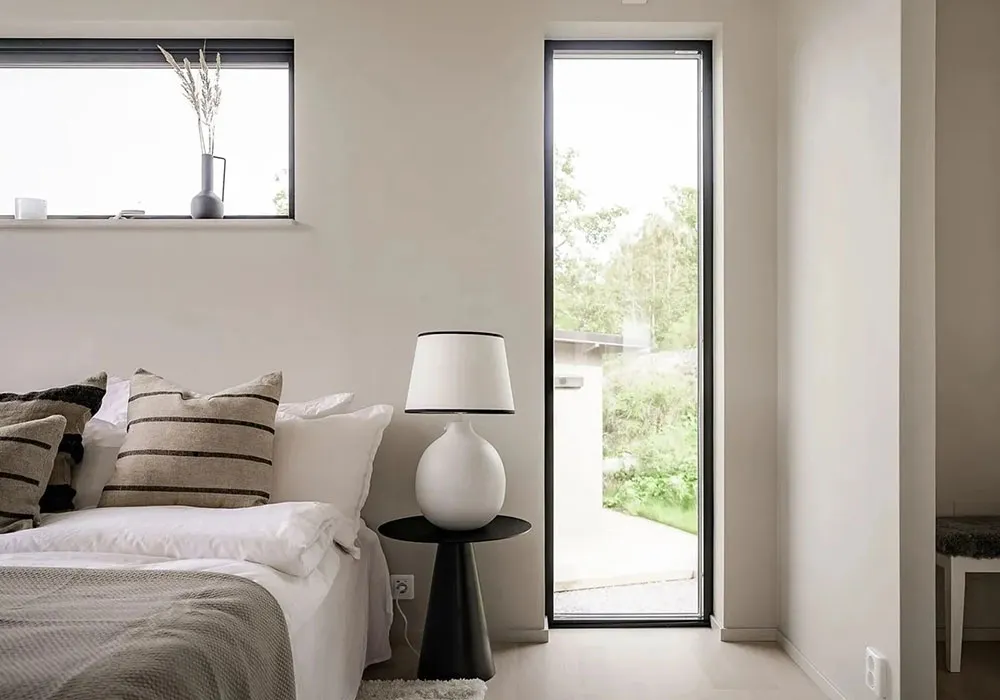 Villa blanche en Suède avec intérieurs noir et blanc