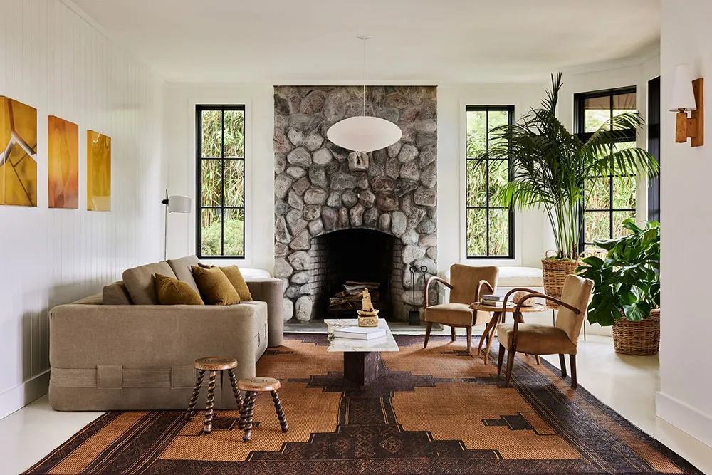 Charmant cottage de campagne sur Long Island avec intérieurs contrastés