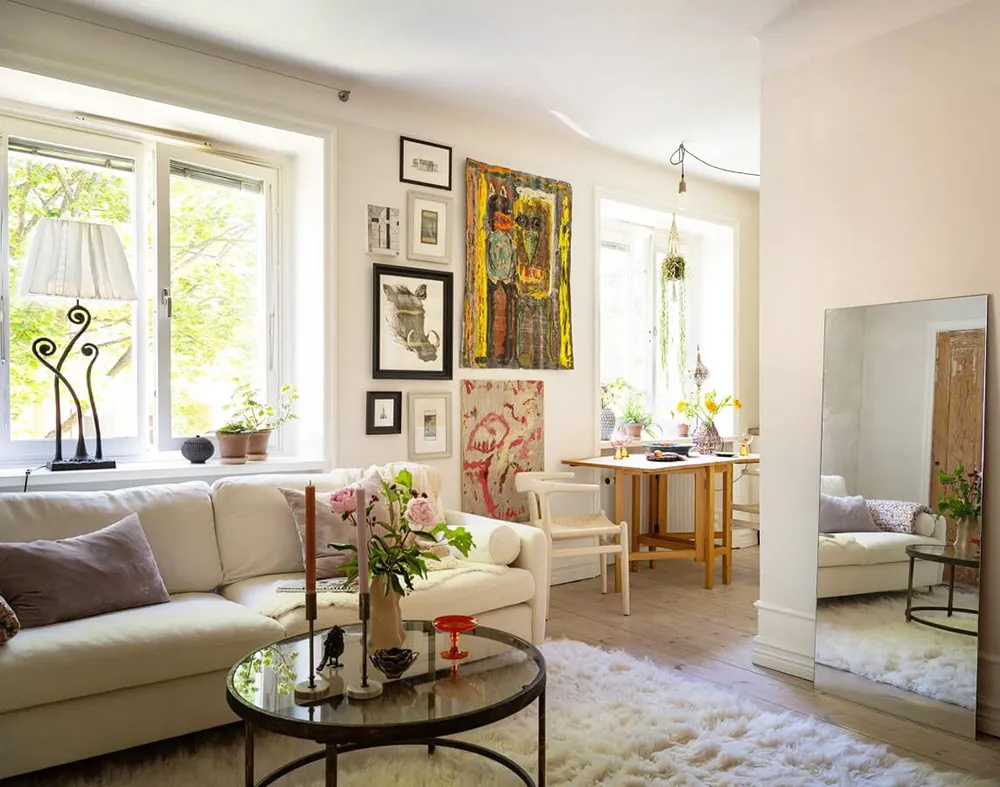 Petite appartement blanc en Suède avec un décor intéressant (40 m²)