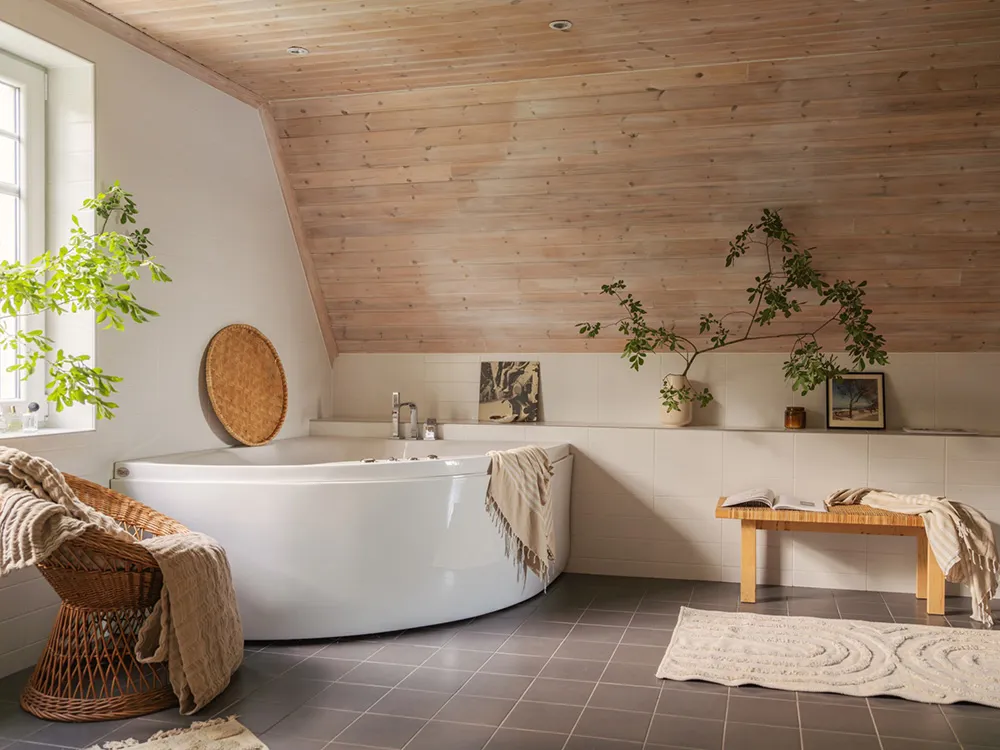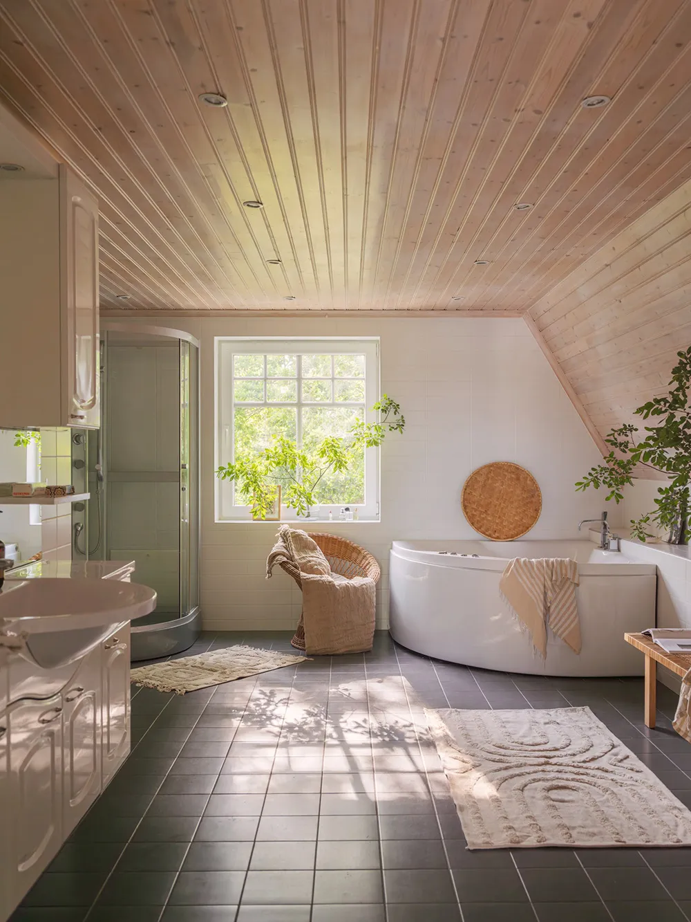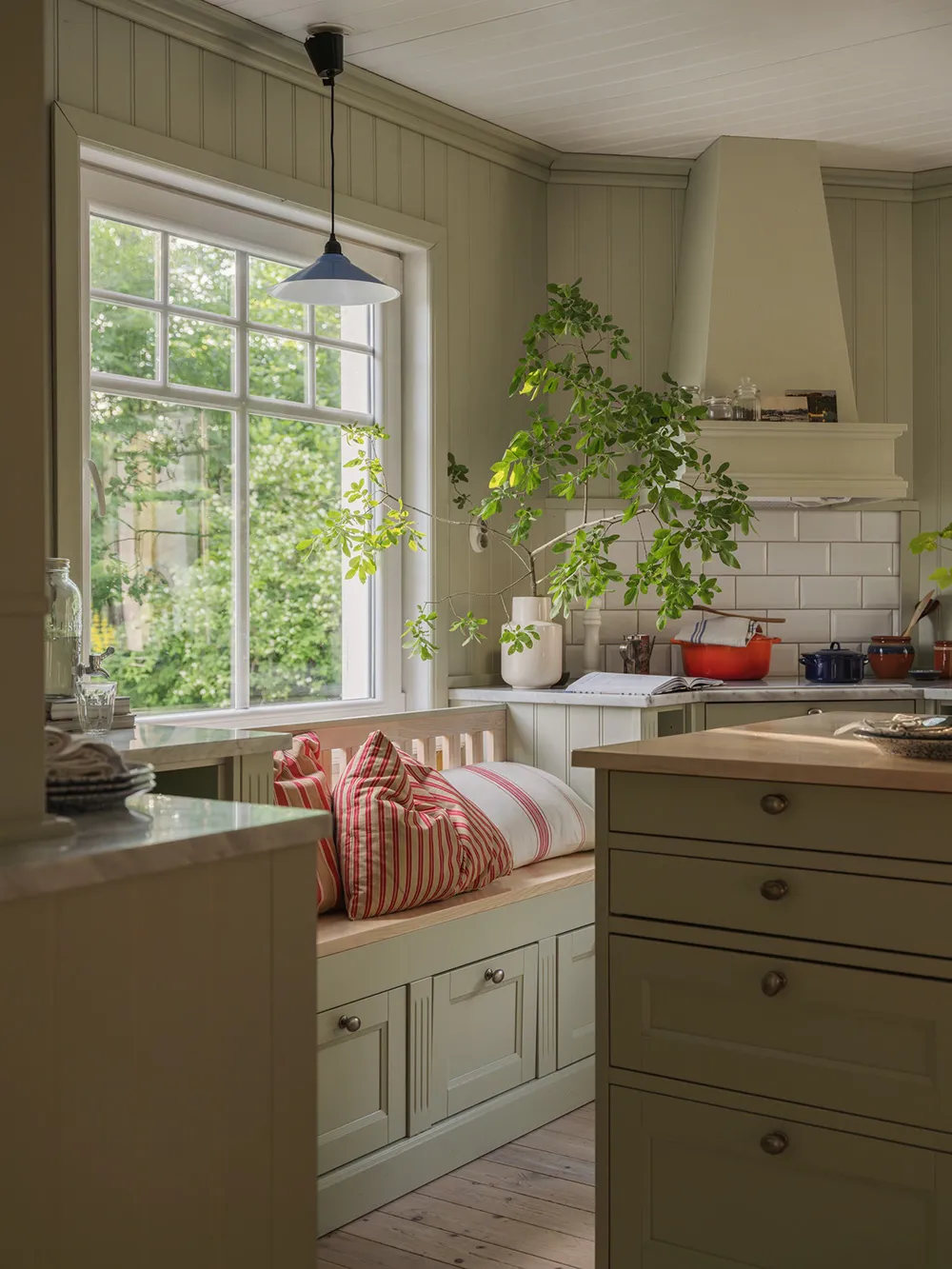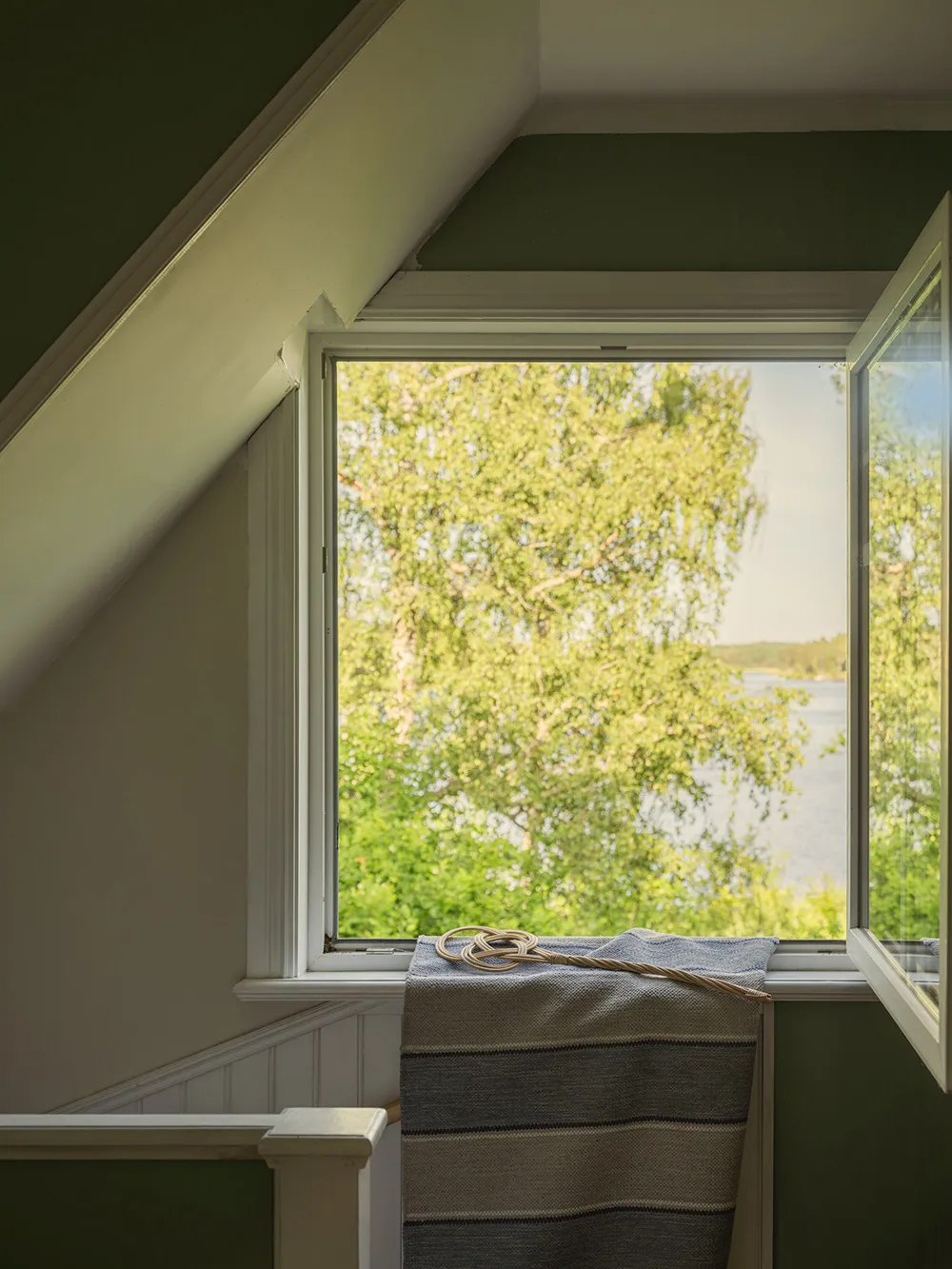 Beaucoup de verdure dans le design d'une maison de camp suédoise au bord du lac