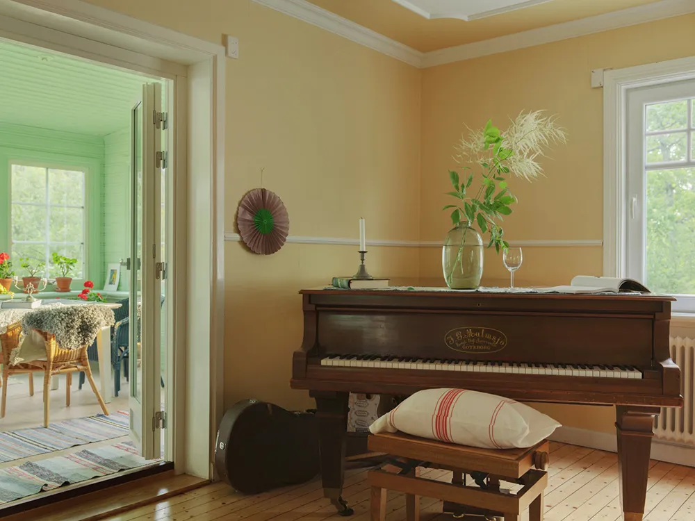 Teintes estivales agréables dans l'intérieur d'une appartement conçu par un designer à Copenhague