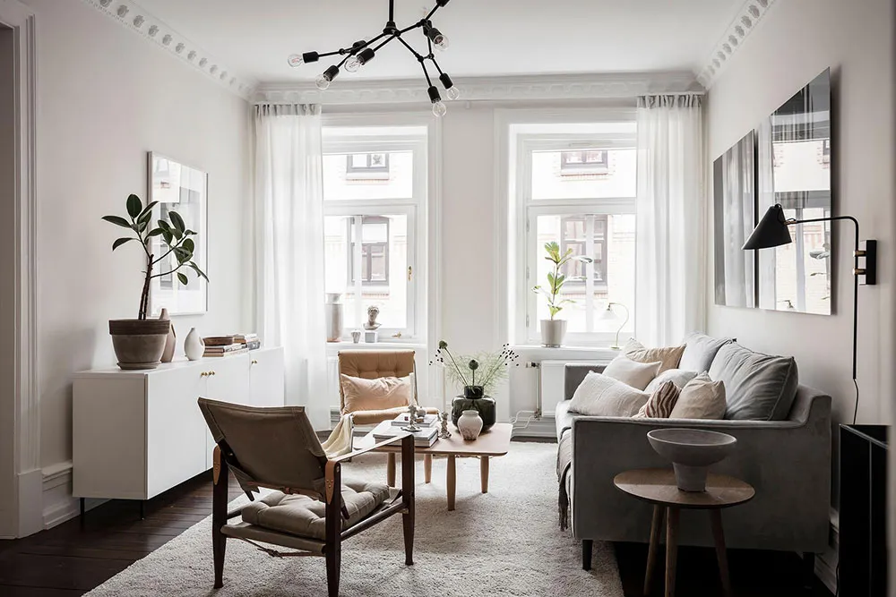 Intérieur Scandinave calme et élégant avec sol sombre (103 m²)