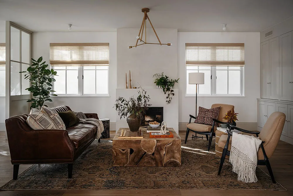 Effet de loft à Londres avec murs en brique et fenêtres arc-en-ciel
