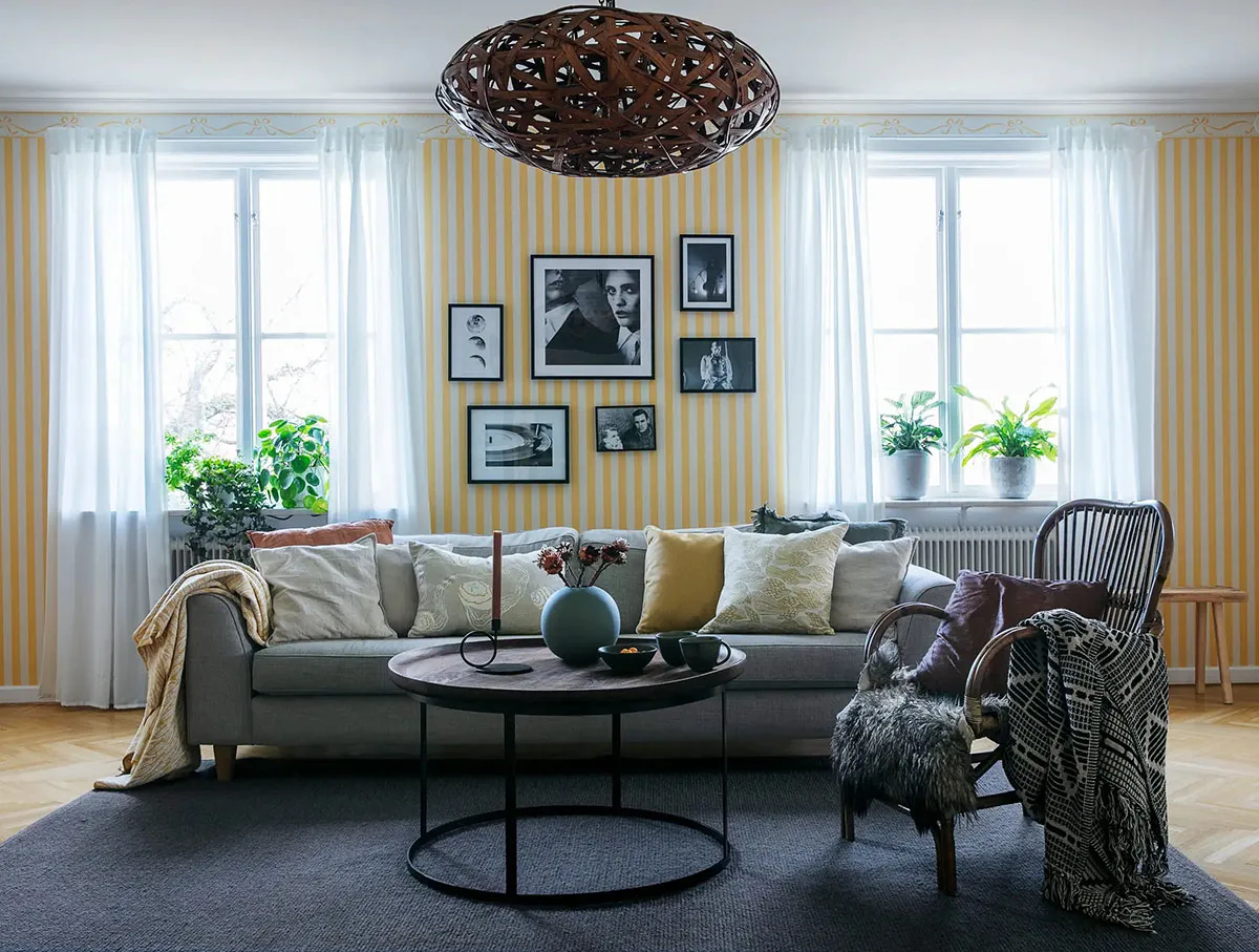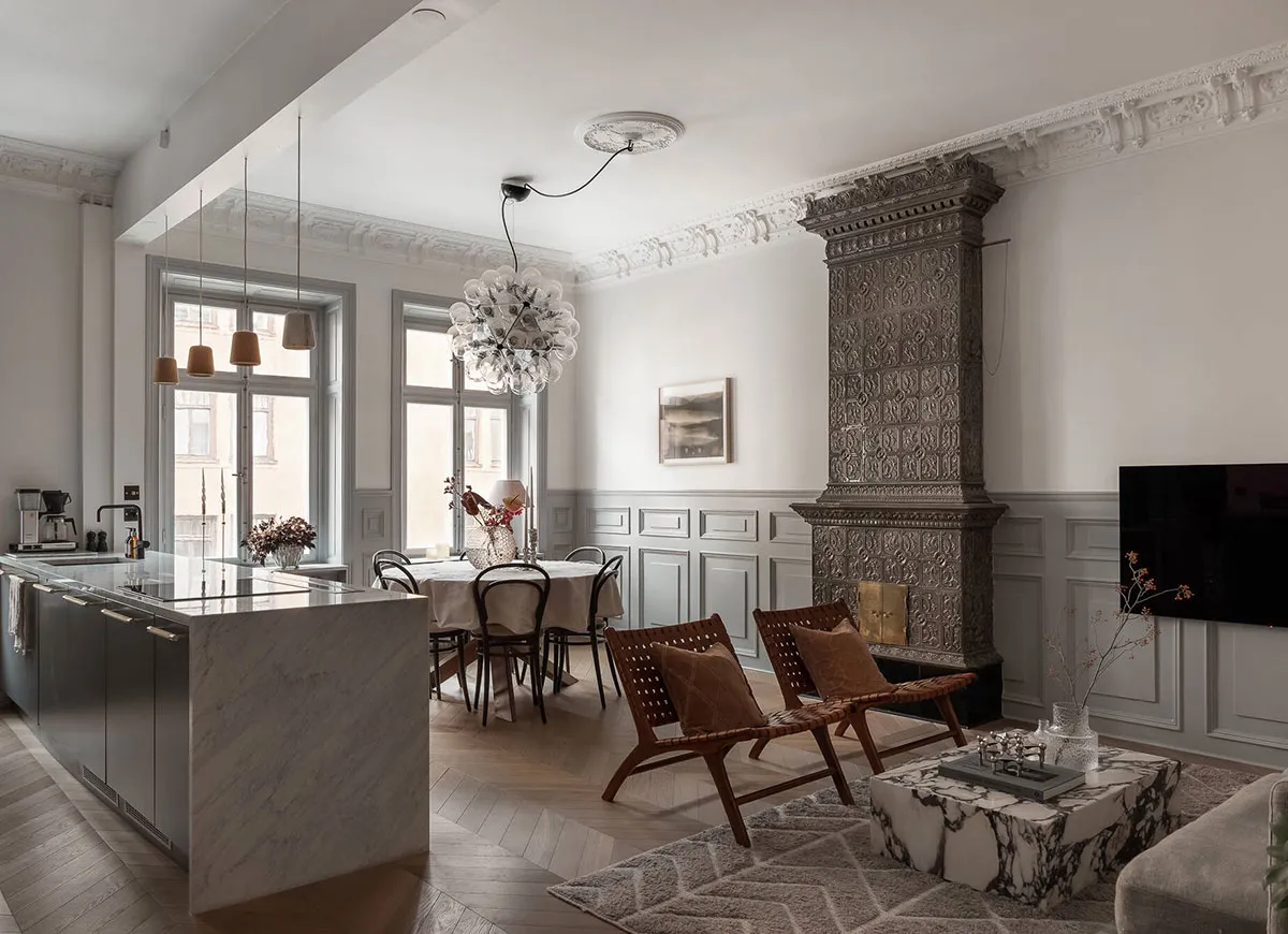 Décor mural classique et meubles modernes : une apartment élégant à Stockholm