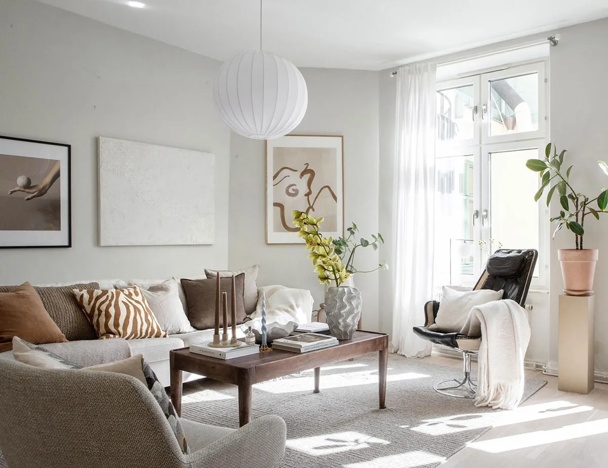 Intérieur scandinave doux, caressé par le soleil (49 m²)