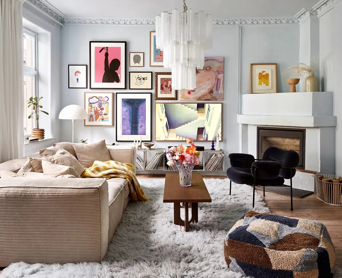 Intérieur frais, mais élégant et stylé avec de l'art à Stockholm