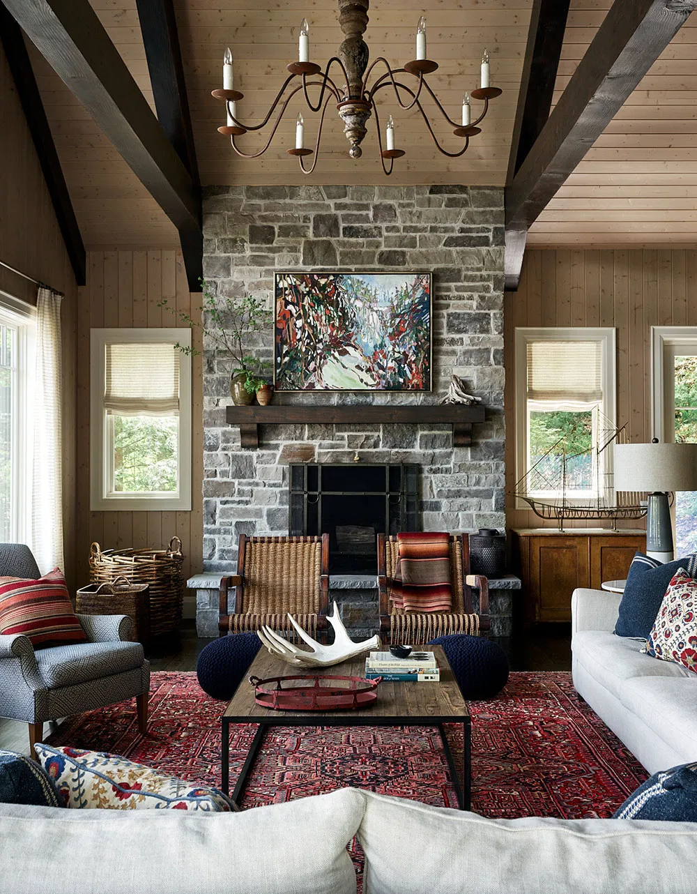 Intérieur exceptionnellement cosy d'une maison en forêt au Canada