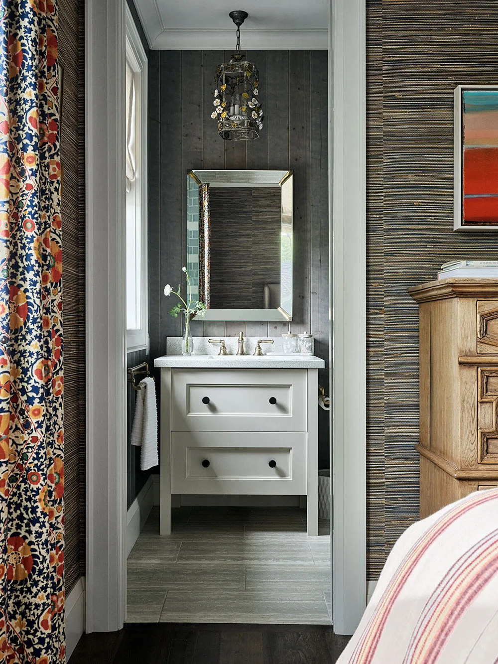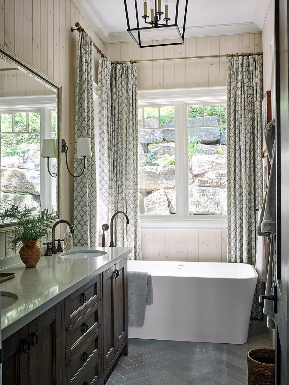 Magnifique cabinette forestier avec intérieur moderne en noir et blanc