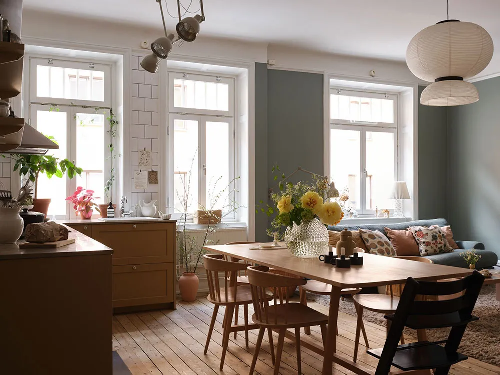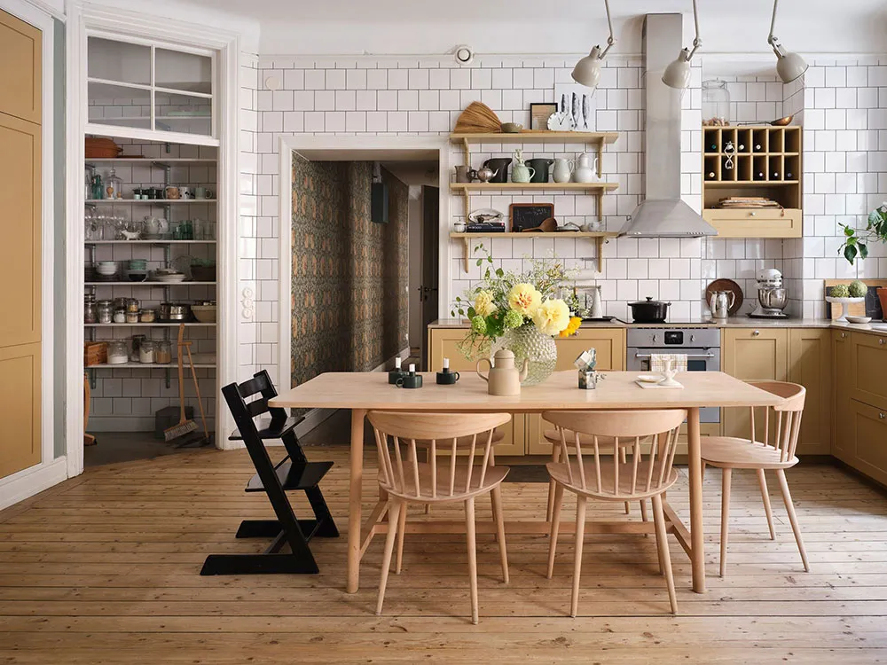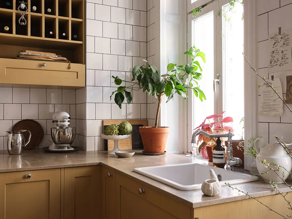 Une cuisine jaune confortable et autres accents de couleur dans le design d'un appartement scandinave (78 m²)