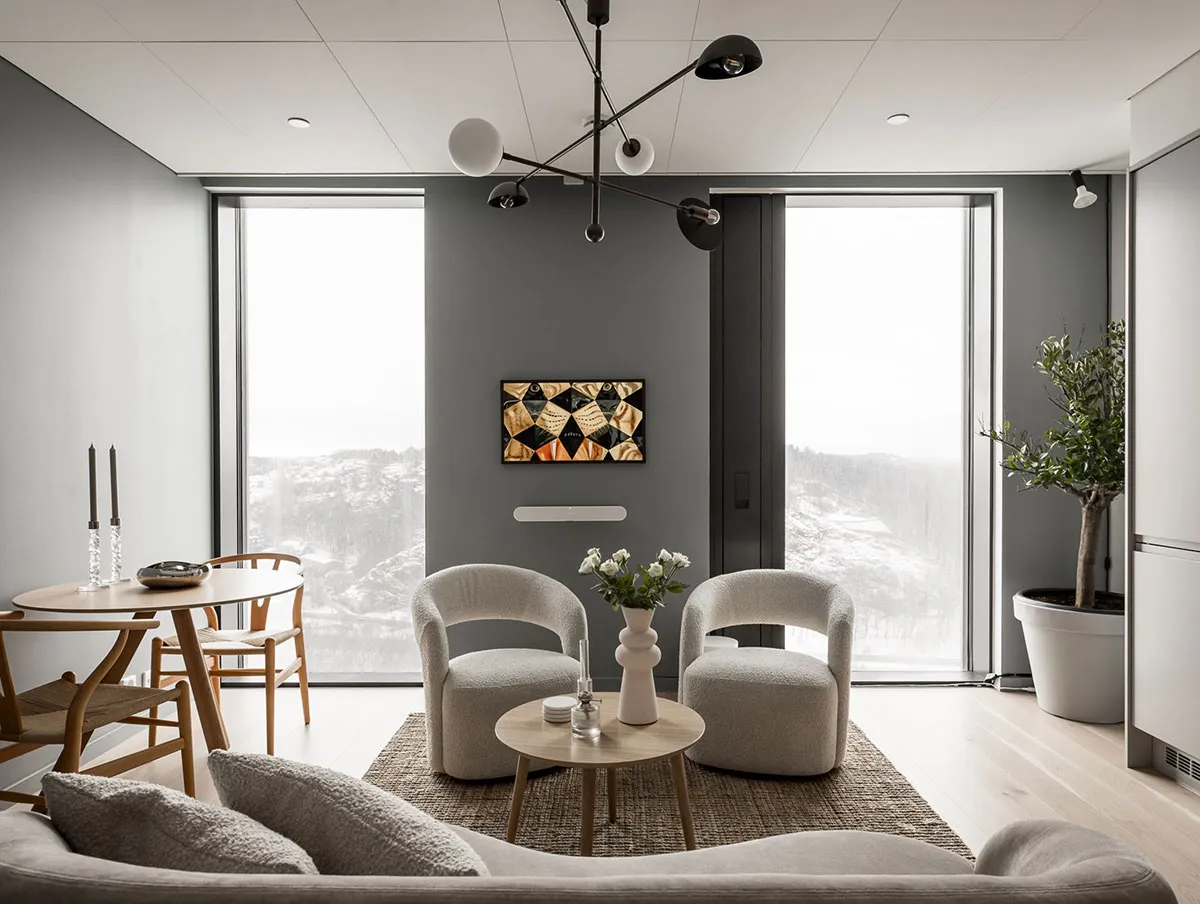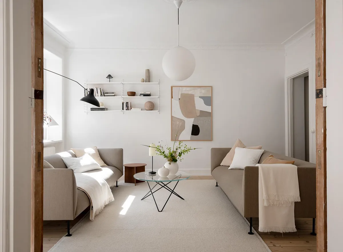 Intérieur scandinave aérien avec décor naturel chaud (89 m²)