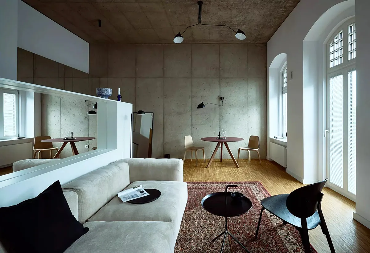 Béton et minimalisme élégant : petit loft à Wrocława (50 m²)