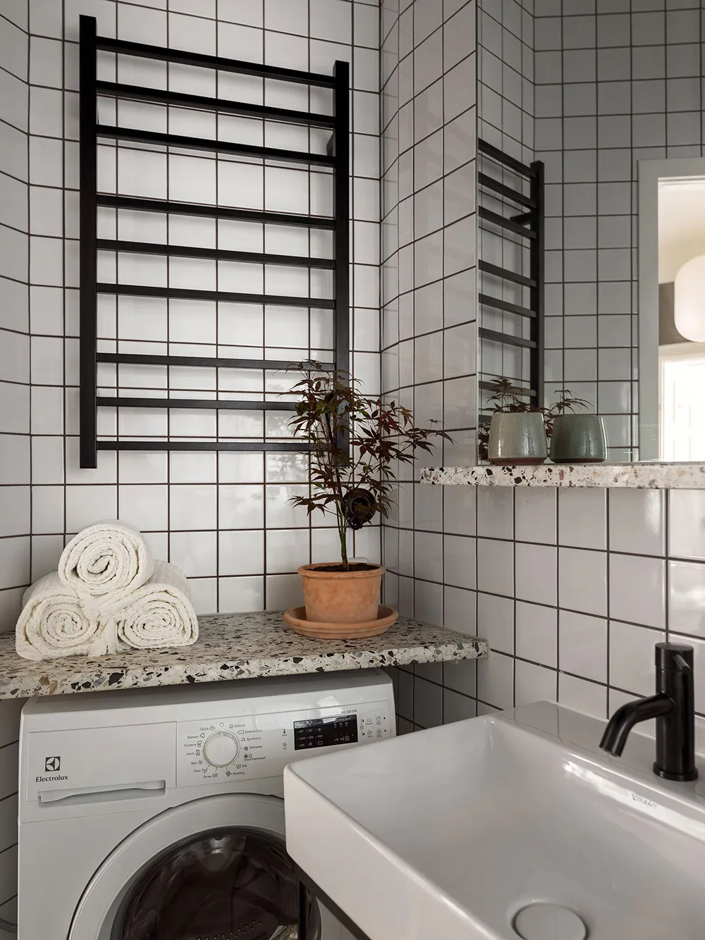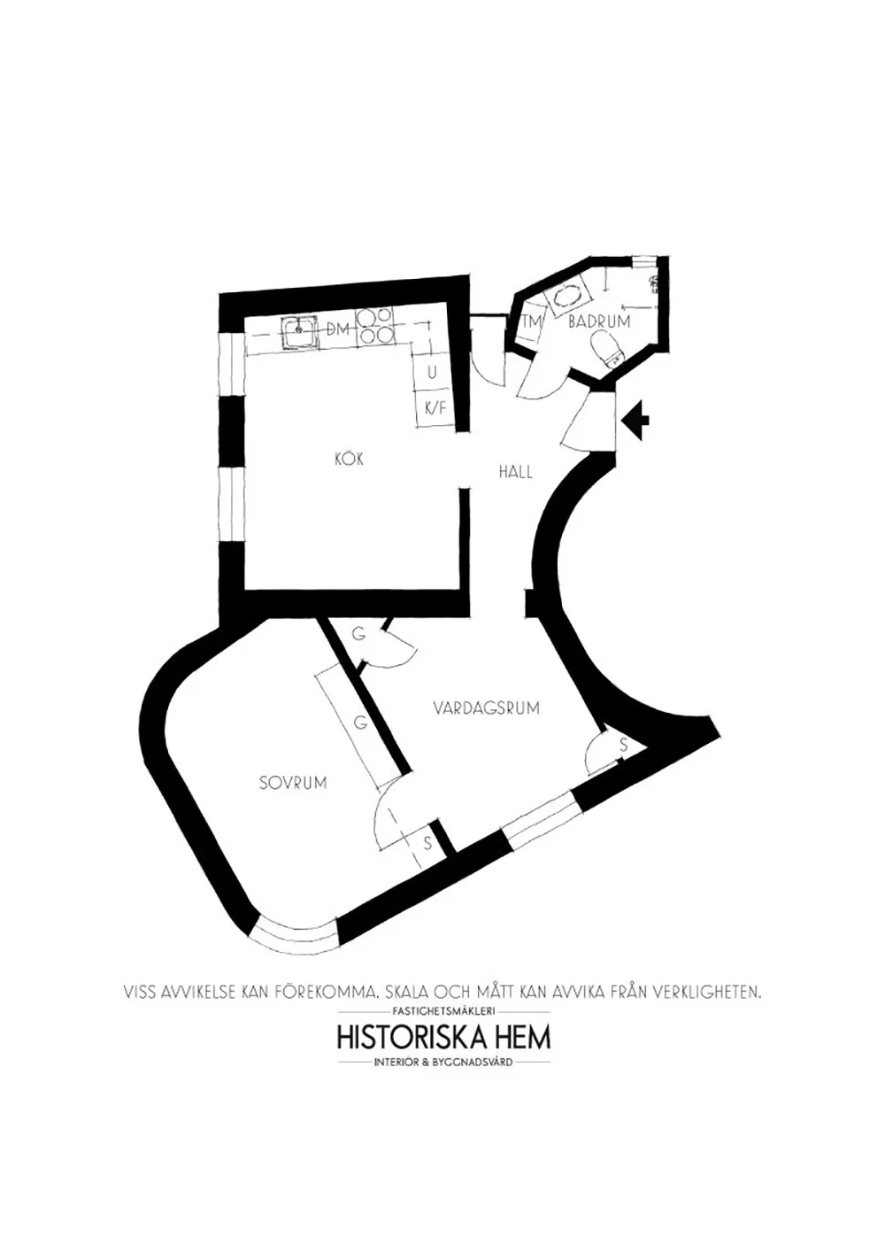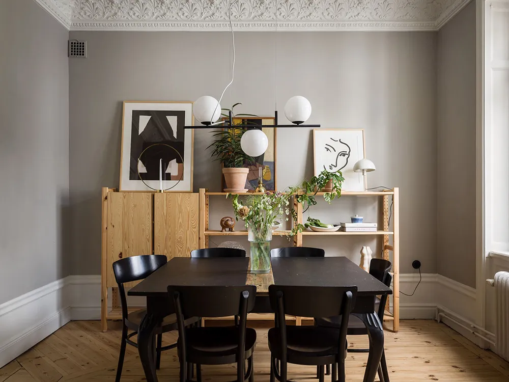 Planification complexe et cuisine noire élégante : petite appartement à Stockholm (55 m²)