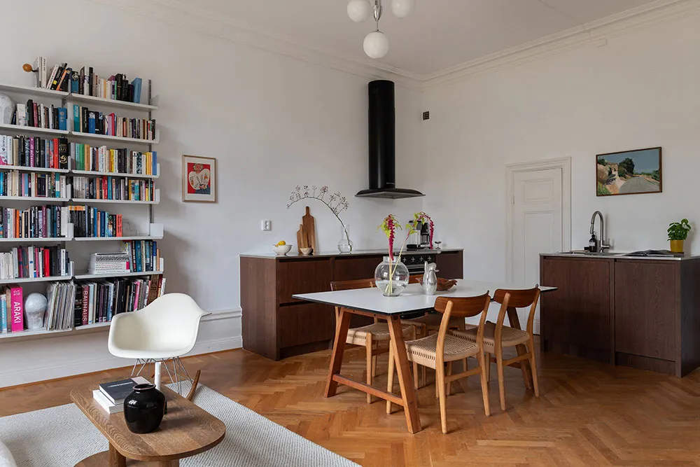 L'élément décoratif principal dans le design de ce logement à Stockholm est la lumière naturelle, qui inonde chaque recoin d'un espace classique élégant.