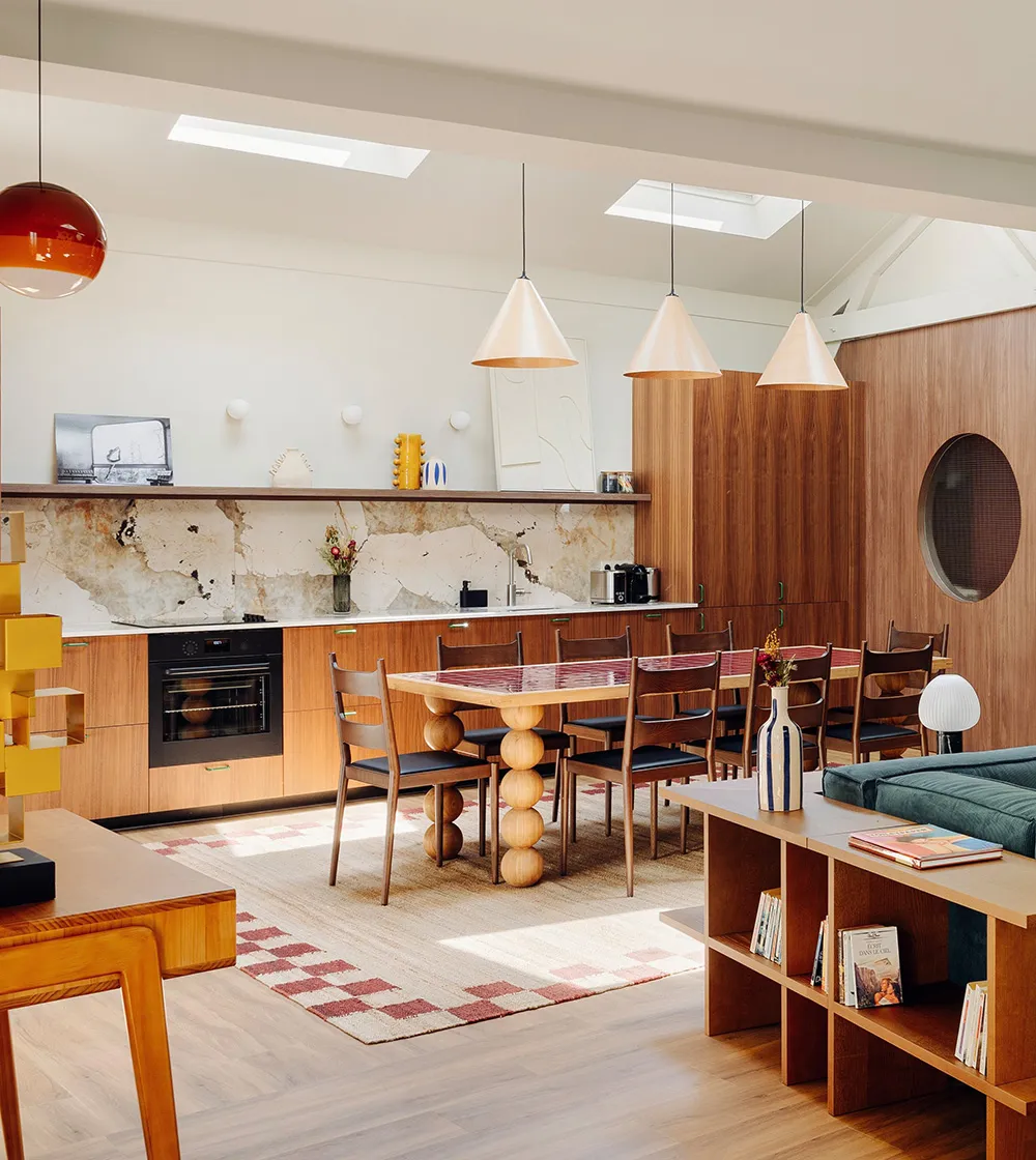 Intérieur tendance dans un townhouse à New York, rappelant un hôtel confortable