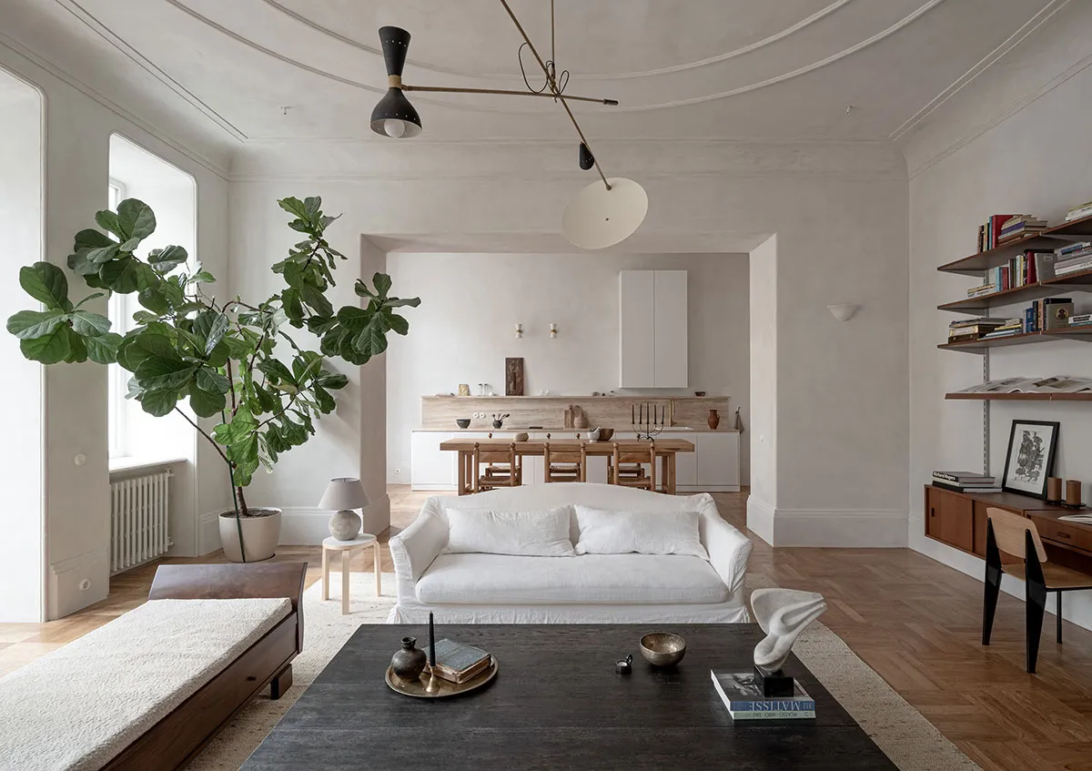 Là-dedans, plafond accentué et meubles élégants : appartement à Stockholm (72 m²)