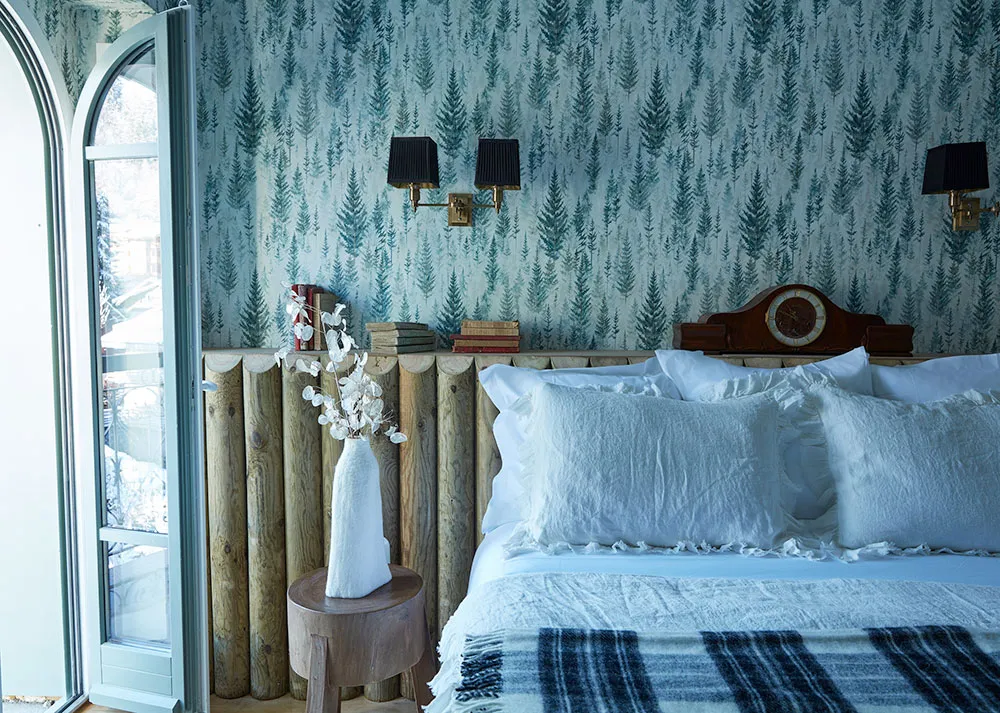 Motifs floraux et contrastes sombres : maison de campagne à Seattle