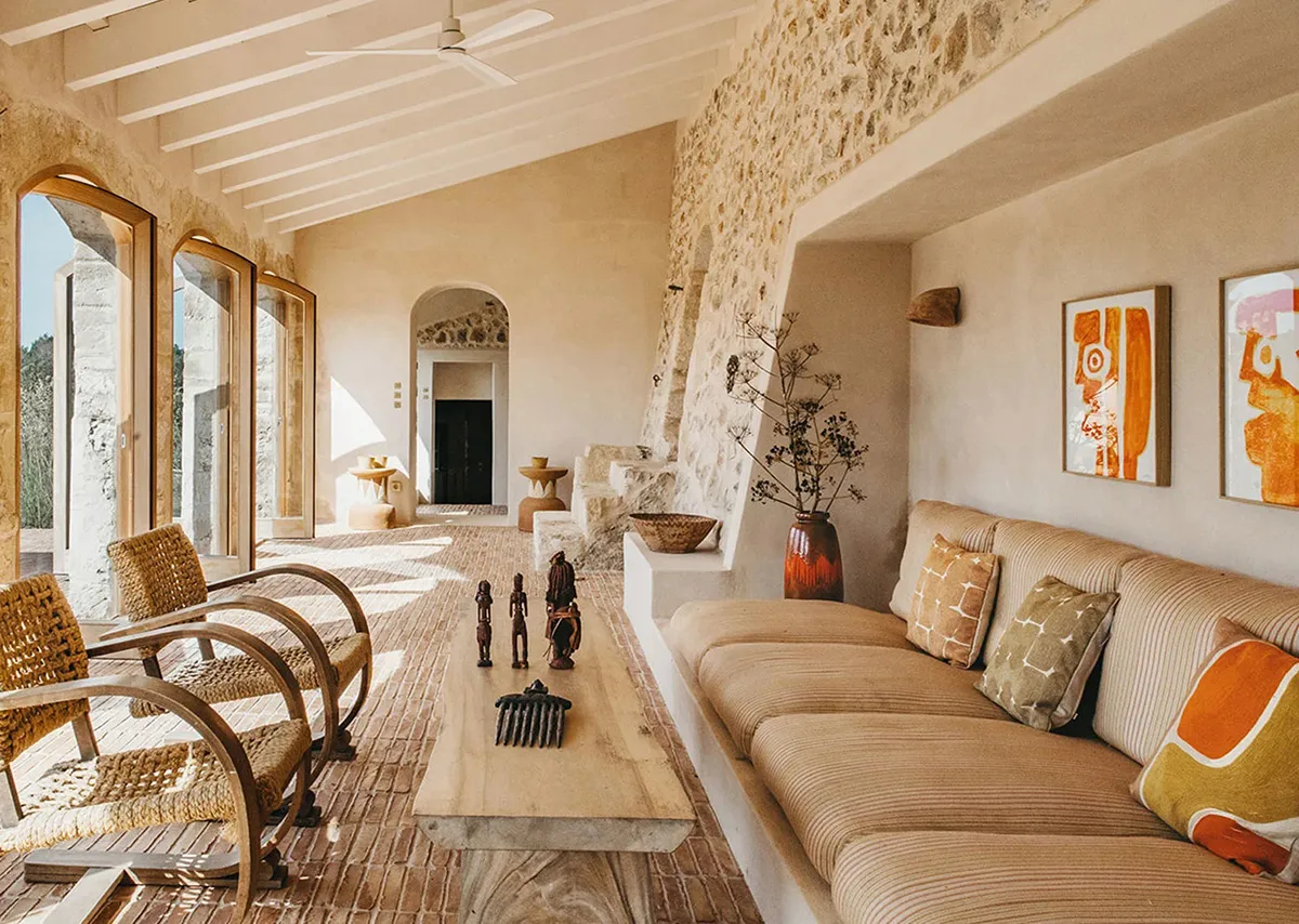 Intérieur chaleureux avec des accents colorés : maison traditionnelle sur Minorque